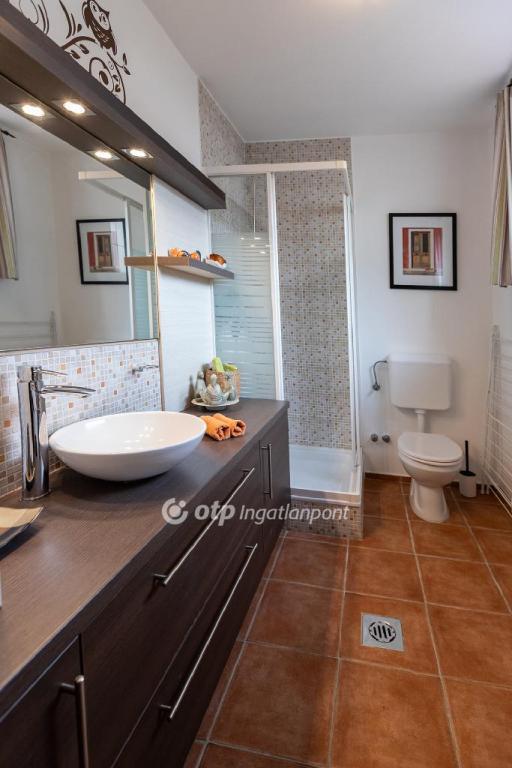 Három kényelmes hálószoba és három fürdőszoba biztosítja a privát kényelmet, míg az emeleti 20 m2-es panoráma teraszról a Balatonra egészen Tihanyig nyílik a kilátás a naplementék innen valóban páratlan élményt nyújtanak.