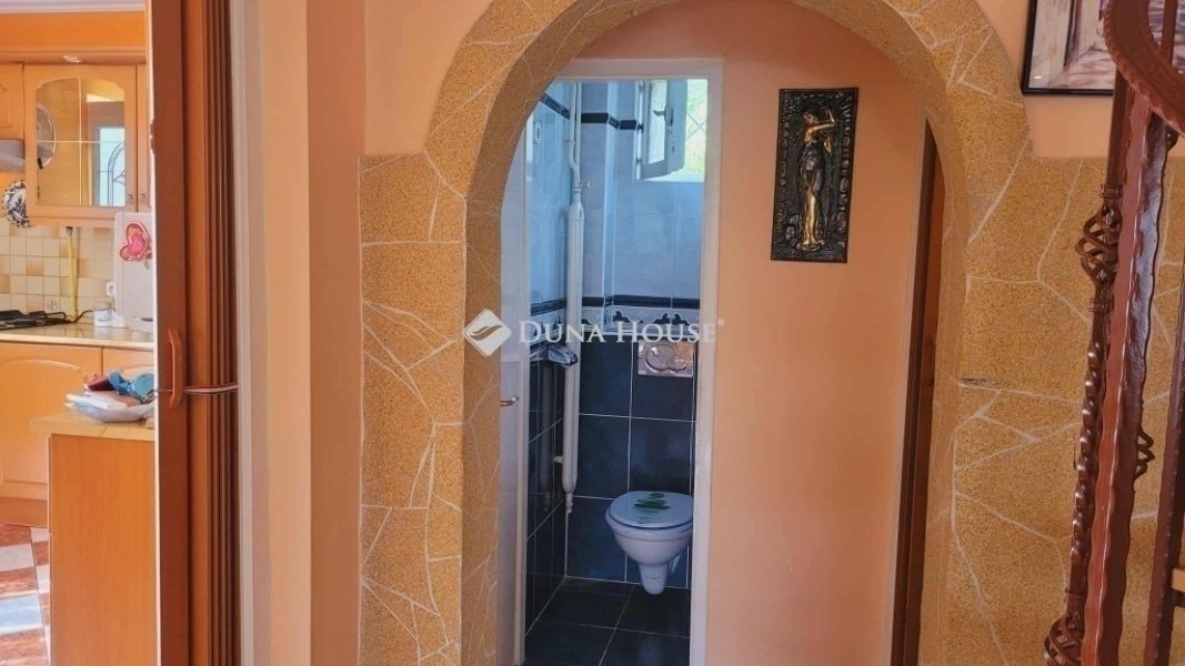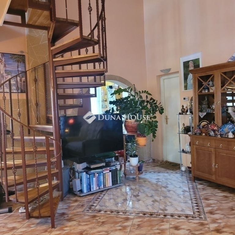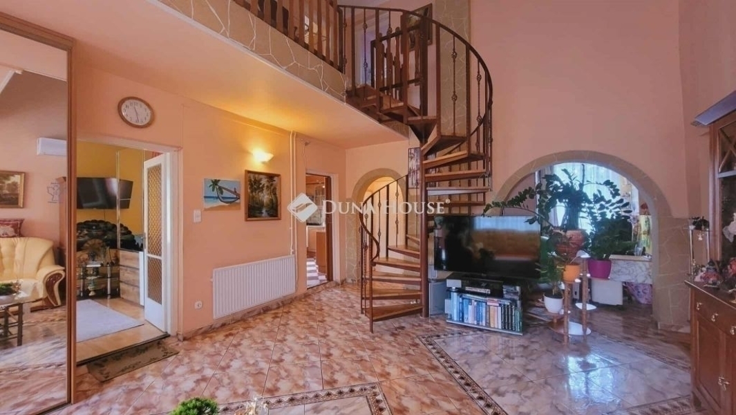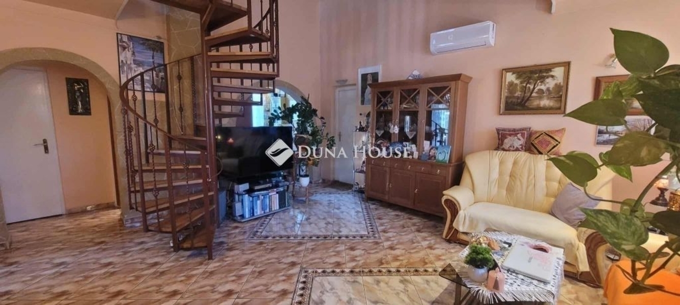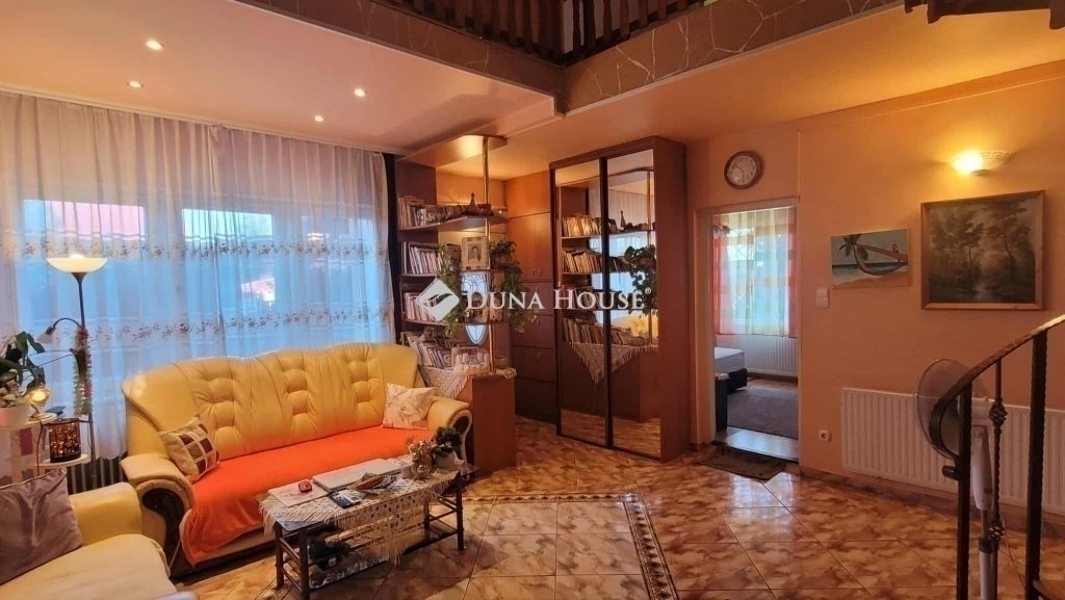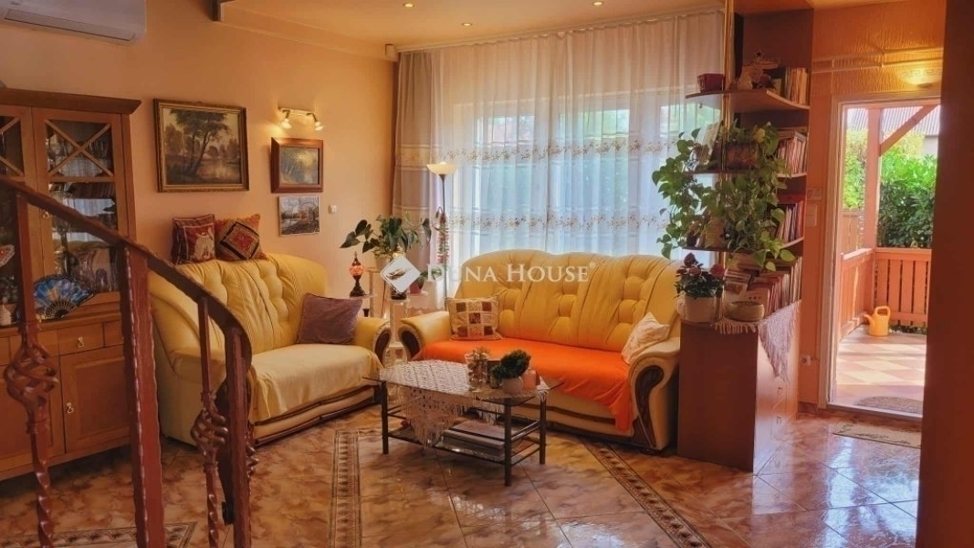 Az ingatlan különlegessége a kovácsoltvas korláttal díszített fa lépcső, amely elegáns megjelenést kölcsönöz a belső térnek. A keretesházas övezet nyugodt, családbarát környezetet biztosít, ugyanakkor a közlekedés autóval és gyalogosan is kiváló.