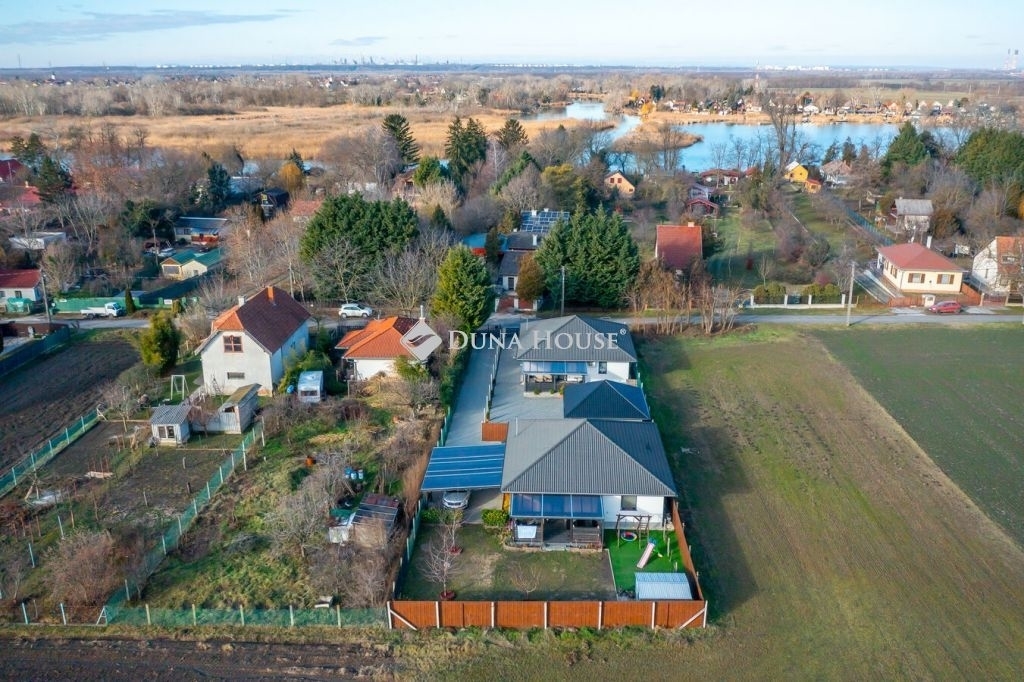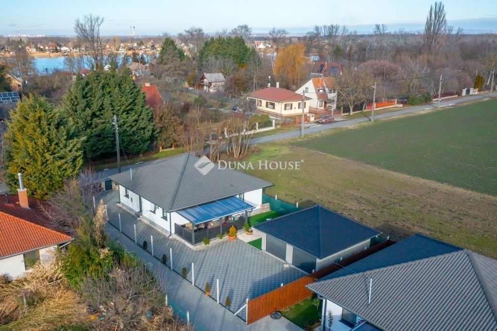 Majosházán eladó egy 440 nm-es körbekerített telken lévő 2019-ben épült 91 nm-es duplagarázsos családiház.CSOK+ ALKALMAS!Az Otthon Portotherm 30 cm -es téglából épült melyre 15 cm-es külső hungarocell szigetelés került. A tetőn antracit szürke betoncserép fedés található. A családi ház fa födémes amely OSB lappal fedett így járható és pakolható. A belső elrendezés előszoba, konyha-étkező-nappali, kamra, fedett terasz, három külön nyíló szoba, fürdő, wc helyiségekből áll. A beépített gépesített konyhabútor a vételár részét képezi. A fűtést és melegvizet gázcirkó biztosítja. A hőleadás lapradiátorokon keresztül történik. A visszatérő fűtéscsövek a padlóban mennek ezért nem hideg a padlózat. A nappaliban hűtő fűtő klíma került beépítésre 2022-ben. Az udvar viacolorral burkolt melyre elektromos nagykapun illetve kiskapun keresztül juthatunk be. A telken található egy 6 m X 6 m-es dupla garázs, külön nyíló elektromos kapukkal felszerelvre. Ha megtetszett Önnek ez a csendes kedves családi fészek, kérem hívjon bizalommal a hét bármely napján akár munkaidőn kívül is. Hibás hirdetés bejelentése