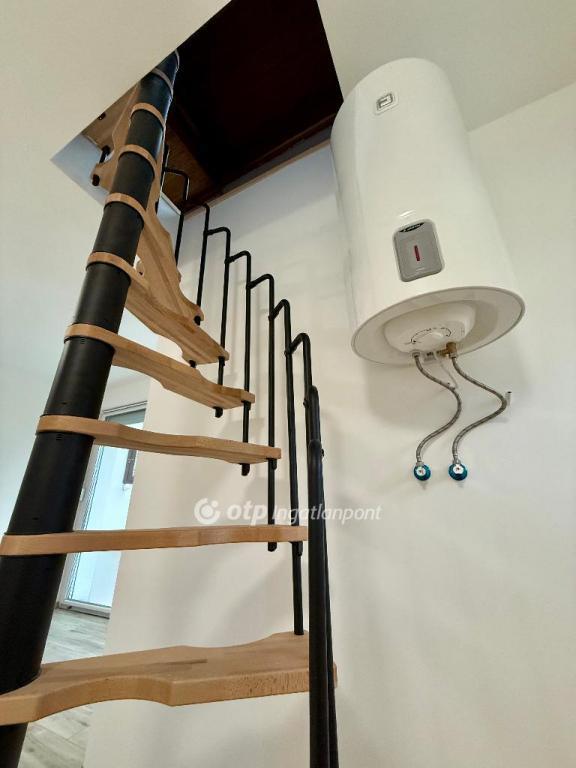 Az emeleti szinten egy tágas, rendkívül kellemes hangulatú szoba található, amelynek belmagassága meghaladja a 2,5 métert. Itt részben kialakított egy hangulatos hálórész, amely galériás jellegével még inkább otthonosabbá teszi a szobát. A felső szint külön külső bejárattal is rendelkezik - akár külön lakrésznek is tökéletes.