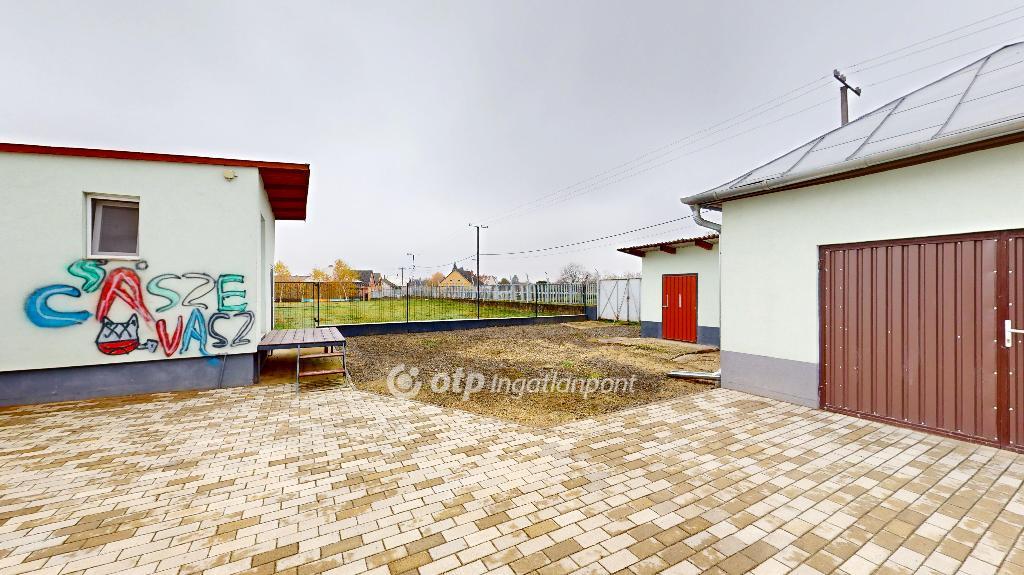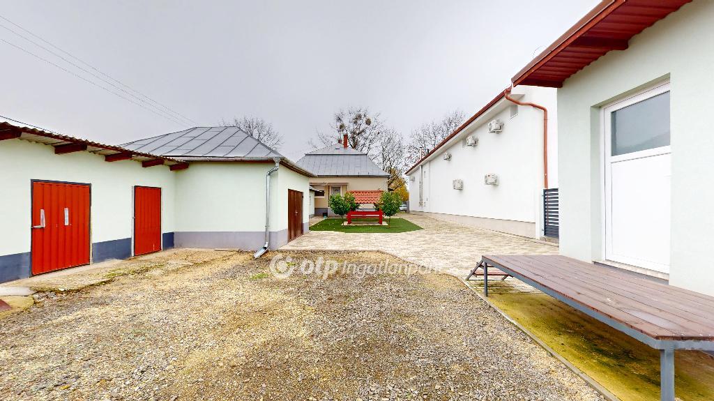 Az épület végében egy zárt garázs található, amely az udvar és az utca felől is ajtóval rendelkezik.
