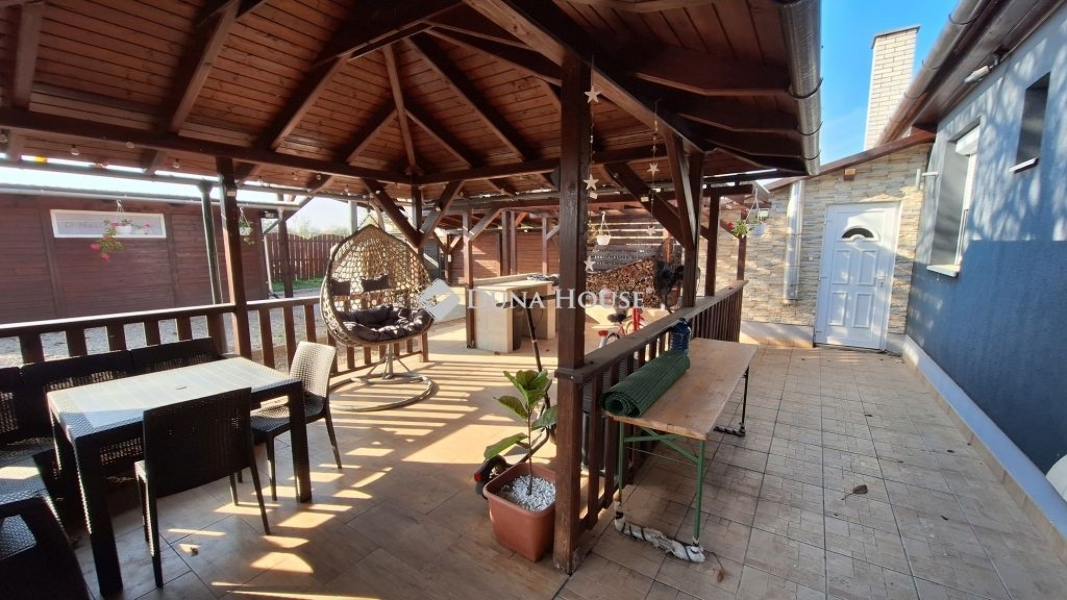 Az ingatlanhoz tartozik egy nagy méretű fedett terasz.