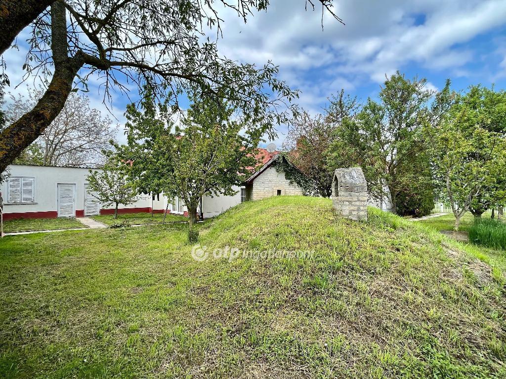 Győrtől 20 km-re, Téti járásban, MÉRGESen átmenő forgalomtól mentes, csendes kis településen 7459 nm -es, teljesen körbekerített telken, teljes közműves 120 nm -es lakóház ELADÓ, amely ideális lehet egy nagyobb létszámú család részére is. A házzal egybe van építve egy 25 nm garázs is amely (akár) átalakítható lakószobává is. A házban 2 szoba, nagy étkező, nagy nappali, konyha, spájz, fürdőszoba áll a lakók részére. Központi gázfűtés van, amihez nagy teljesítményű vízteres fatüzelésű kandalló csatlakozik. Az ingatlan (kert) területén, egy gyönyörű kb. 6x3-as, 20 nm -es téglából épített boltíves, hűvös pince is megtalálható. A telek további részén, egy hatalmas egybefüggő épület van fedett terasszal. Ez a melléképület Leier - téglából épített, mennyezete szigetelt, gáz- és vízvezetékkel, 3x25A árammal ellátott, így kis- vagy közepes vállalkozásra, vagy raktározásra kiválóan alkalmas. A kerti részen többfajta gyümölcsfa található, az 500 nm -es udvari rész térkővel burkolt. Az ingatlanhoz tartozó 5000 nm -es szintén körbekerített hátsó kerti rész akár gazdasági célokat is szolgálhat. Amennyiben hirdetés felkeltette érdeklődését, keressen bennünket bizalommal. Az ingatlan OSP (Otthon Start Orogram) hitellel is megvásárolható!