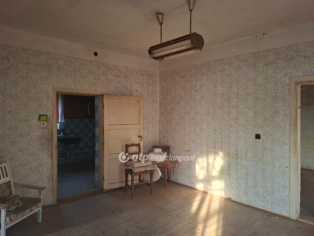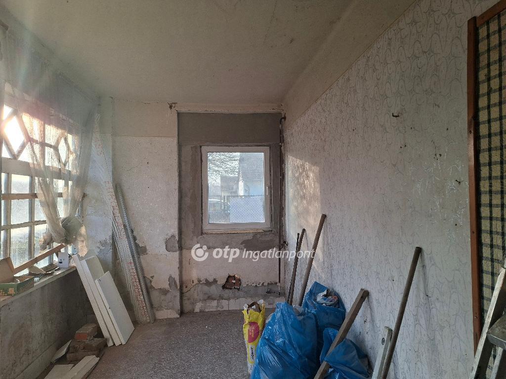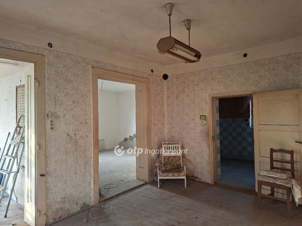 A 90 nm-es családi házban nappali-étkező, 2 szoba, tágas előszoba, konyha, kamra, közlekedő, külön fürdőszoba és wc helyiségek vannak kialakítva. Fűtés nincs, de a korábbi gázkonvektorok leágazásai rendelkezésre állnak, így a készülékek visszahelyezésével gyorsan megoldható. Az utcai nagy szoba és az előszoba betonozott, az utcai ablakok és a bejárati ajtó új, műanyag, hőszigetelt. A tágas, napfényes ház jelenleg teljesen felújítandó állapotú. Minden helyiségben a padozat kialakítása, a falak vakolása indokolt. Víz-, villany-, és gáz szolgáltatás rendben, a városi csatornarendszerre azonban nincs rákötve, ez a feladat az új tulajdonosra vár.