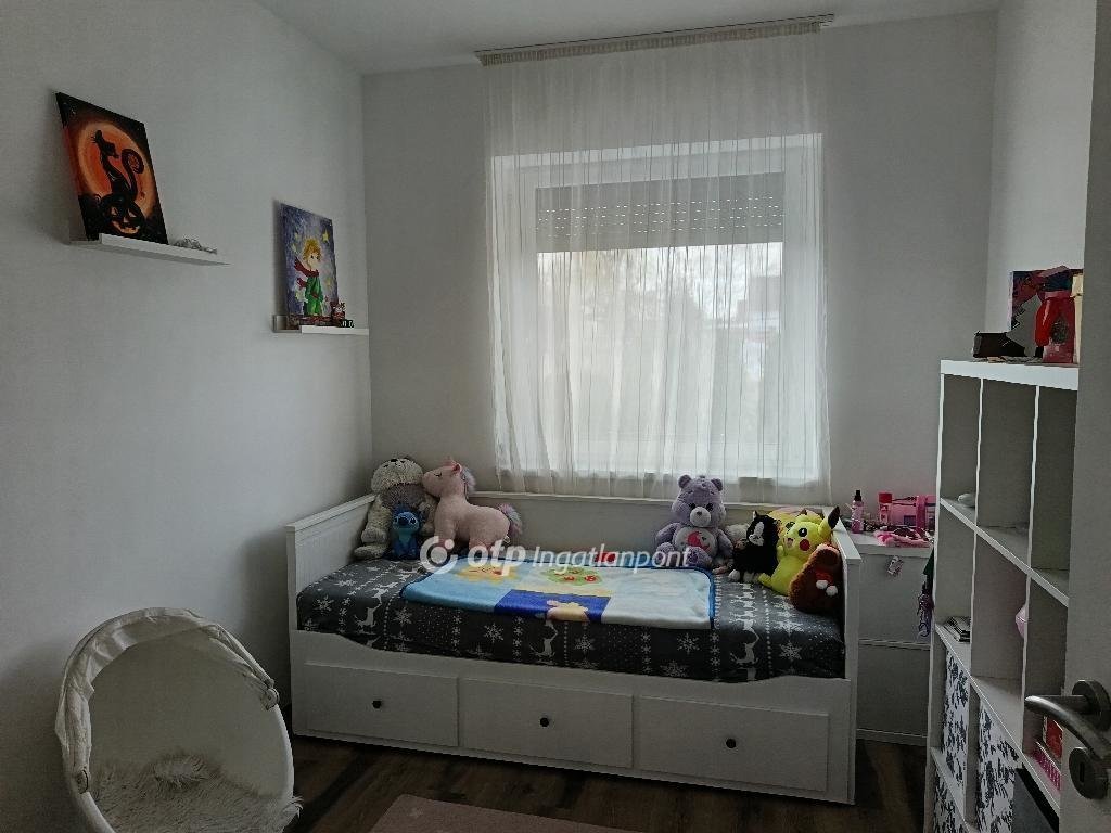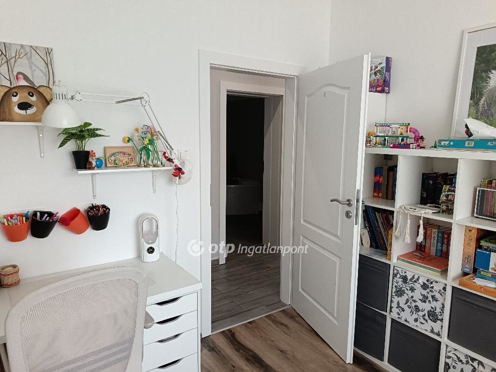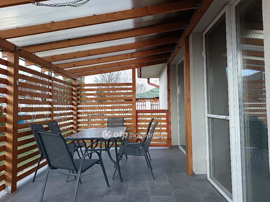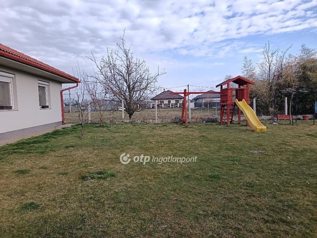 A 817 m2-es gondozott telek kiváló lehetőséget biztosít kertészkedésre, pihenésre vagy családi programokra. A gyerekeket hintaállvány és csúszda várja.