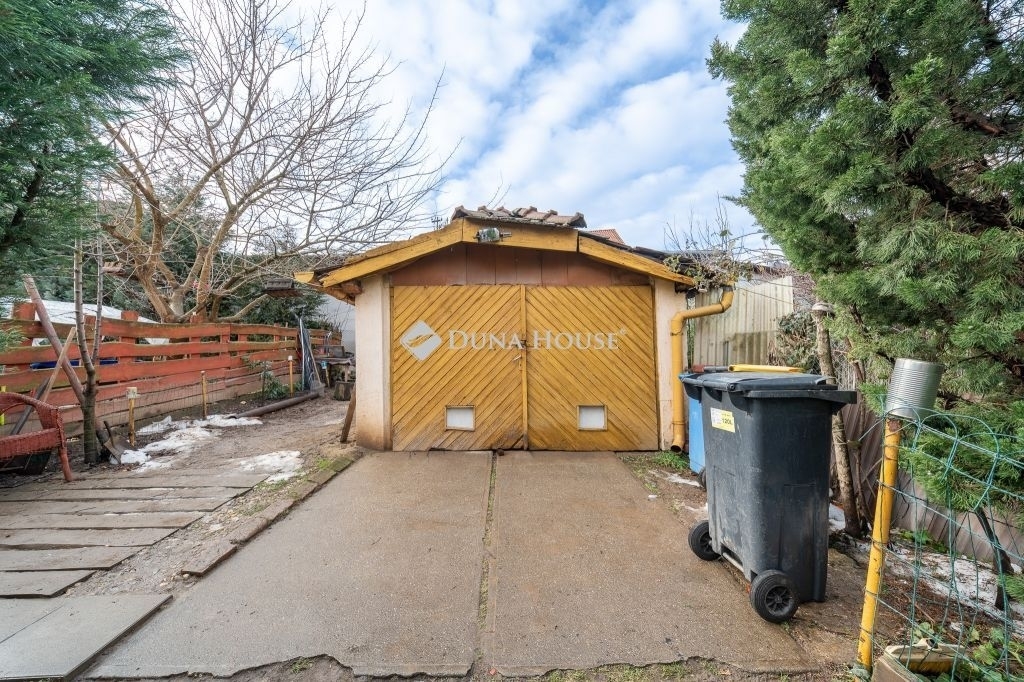 Extrák: Különálló garázs (15 m²) és részben cserélt nyílászárók redőnnyel.