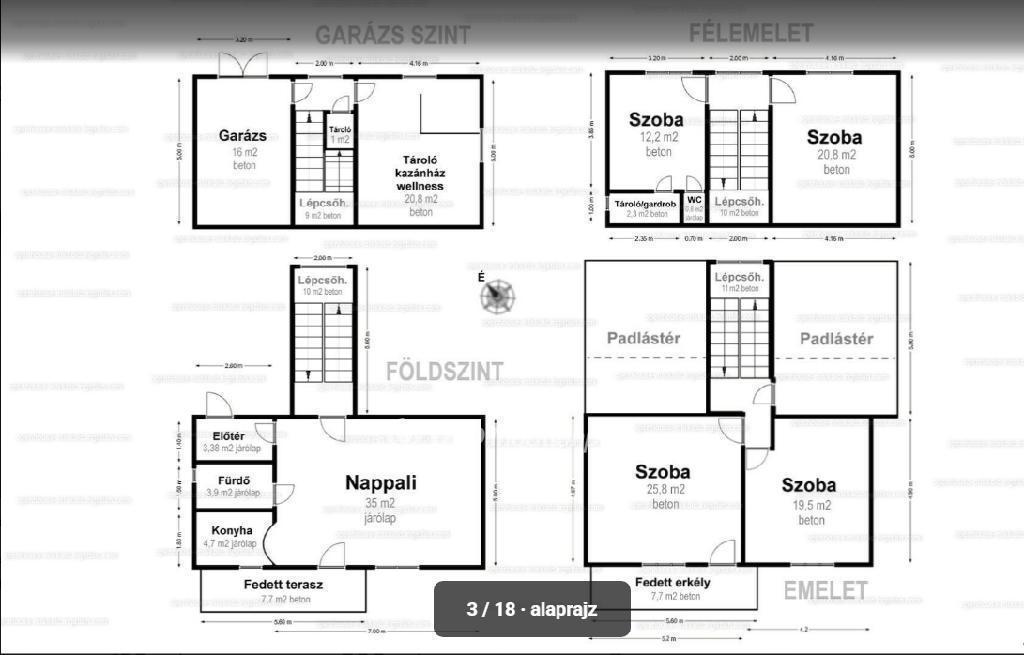 - Garázs és kazánház, ahol a jelenlegi tulajdonos wellness-részleget (szauna, pihenő) tervezett kialakítani.