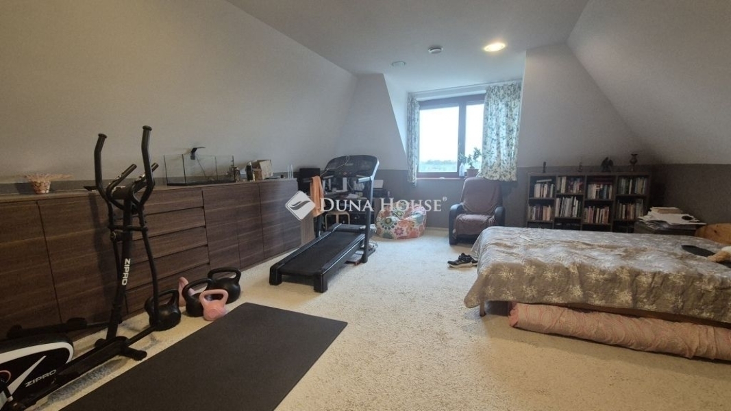 Mogyoród panorámás részén energiatakarékos családi ház, két külön bejáratú lakássalMogyoród egyik legszebb, dombtetőn fekvő panorámás részén, a Berektető úton eladó egy 2019-ben épült, kiemelten energiatakarékos családi ház, két külön bejáratú lakással.Az ingatlan összesen 168 m² (130 m² + 38 m² szuterén), 764 m² telken. A szuterénben nappali-konyha, 2 szoba és fürdő található, a földszinten 3 szoba (egy saját fürdővel), amerikai konyhás nappali, további 2 fürdő, vendég-WC és kamra.Az épület Porotherm klíma téglából készült, 1645 cm hőszigeteléssel, háromrétegű fa nyílászárókkal. Fűtése elektromos (H- és vezérelt tarifás órákkal), minőségi japán klímákkal és padlófűtéssel. Központi hővisszanyerős szellőztető biztosítja a friss levegőt. A rezsi rendkívül alacsony: 2024-ben átlagosan 28.000 Ft/hó.A kertben 2 föld alatti esővíztartály, 3 autós térkövezett beálló, 2 tároló, 18 m² kiülő és 12 m² bográcsozó található.Ideális választás többgenerációs családnak vagy befektetésnek: modern, energiatakarékos, azonnal költözhető otthon.