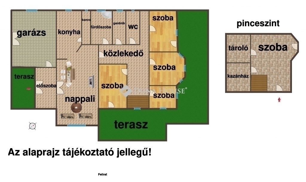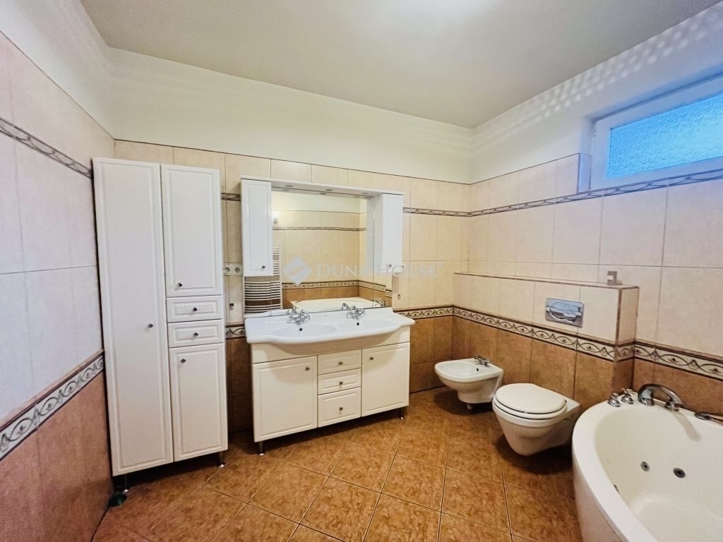Mediterrán stílusú, tágas 5 szobás családi ház Mogyoródon intim kert, terasz és dupla garázs!Mogyoródon nyugodt, családbarát környezetben kínálunk eladásra egy 2004-ben épült, mediterrán stílusú, 204 m² alapterületű családi házat, amely egy 767 m²-es gondozott telken helyezkedik el. Az ingatlan részben alápincézett, ám a pinceszint is lakóminőségű, így további terek kialakítására is lehetőség van.A ház 5 szobával, tágas, átgondolt elosztással rendelkezik, amely ideális családok számára, akik a nyugalmat és a tágas tereket értékelik. A nappali és a dolgozószoba közvetlen kijárással rendelkezik a teraszra, a pinceszintről pedig közvetlenül az udvarra lehet kijutni. A nappaliban kandalló biztosítja a hangulatos, mediterrán légkört, míg a padlófűtés a hideg burkolatos helyiségekben kényelmet nyújt.Az ingatlan modern komforttal felszerelt:Kombi gázkazán a fűtéshez és melegvíz ellátáshozNappaliban klímaKözponti vízlágyító rendszerHőszigetelt nyílászárókRedőnyök és szúnyoghálókÁtgondolt, funkcionális terekA konyha és az óriási nappali egy légteret alkot, amely ideális társasági élethez és családi összejövetelekhez. Az ingatlan 2 autós garázzsal rendelkezik, a garázsból és a pinceszintről is közvetlen átjárás van a házba. A gépkocsi bejárat díszburkolattal készült, ami tovább emeli a prémium érzetet.A kert intim és gondozott, örökzöldekkel és szezonális növényekkel beültetett, öntözőrendszerrel ellátott, és kerti sütögetővel is rendelkezik.Elhelyezkedés:A nagyközség főutcája, a 21-es út, valamint az M3-as autópálya könnyen elérhetőTömegközlekedés: H8-as HÉV két megállója is a közelben (8-10 perces sétára)Ez a ház ideális választás családoknak vagy bárkinek, aki a nyugalmat, a tágas tereket és a prémium minőséget értékeli.Bankfüggetlen hiteltanácsadással állok rendelkezésre, hívjon bizalommal a nap bármely szakában! Hibás hirdetés bejelentése
