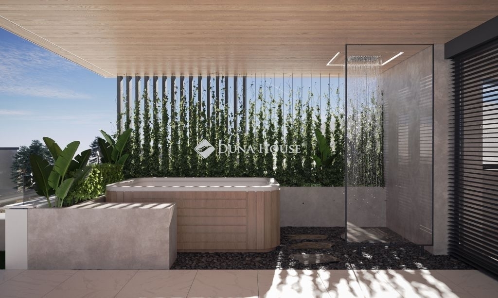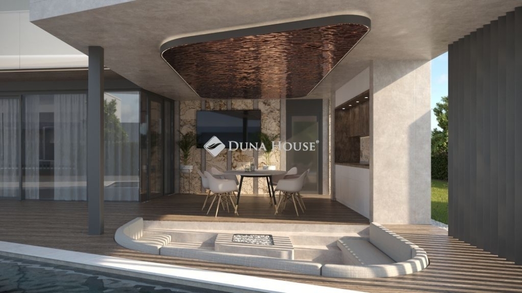 Jelenlegi tervekben szerepel pl.: medence, szauna helyiség, kültéri látvány konyha, fenti teraszon jakuzzi.