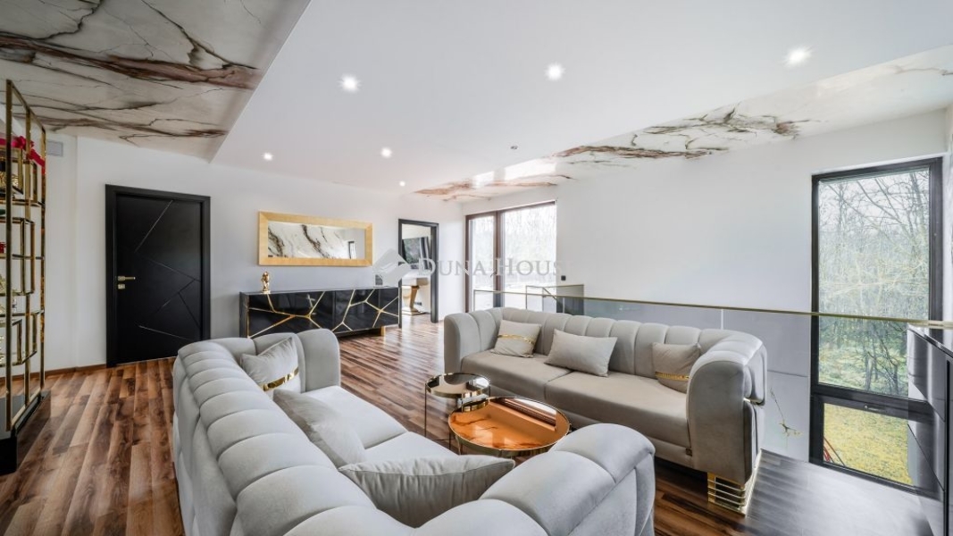 Budapest közvetlen vonzáskörzetében, egy zárt és őrzött, exkluzív villaparkban kínálok megvételre egy 430 m²-es, triplakomfortos családi villát 150 m²-es terasszal, 1 654 m²-es, parkosított telken, kétállásos teremgarázzsal. Az ingatlan minden négyzetmétere a kompromisszummentes minőséget, gondos tervezést és a prémium életérzést tükrözi.