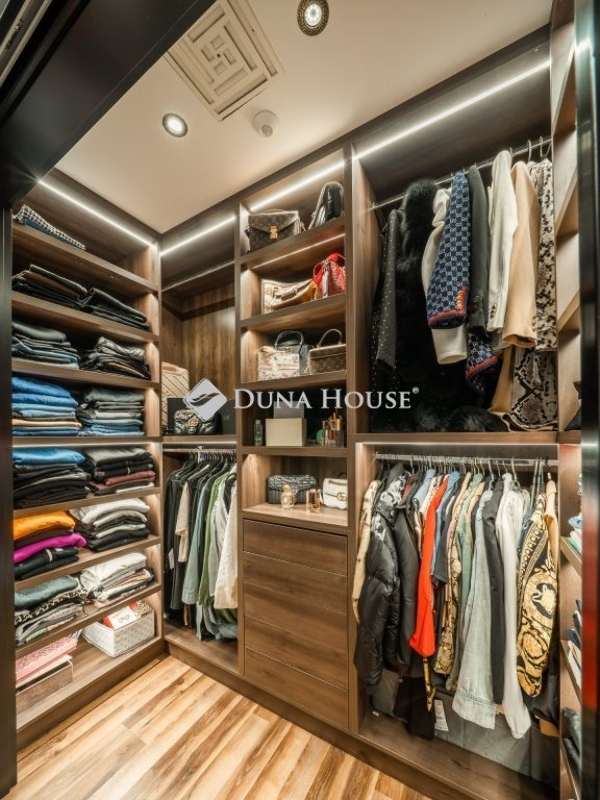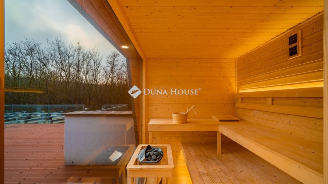 A földszinten tágas közösségi tér, szabadidőszoba, edzőterem és házimozi, az emeleten a szülői lakosztály saját gardróbbal, fürdővel és üvegfalú, privát szaunakapcsolattal várja az új tulajdonost. Minden hálószoba külön fürdőblokkot kapott.