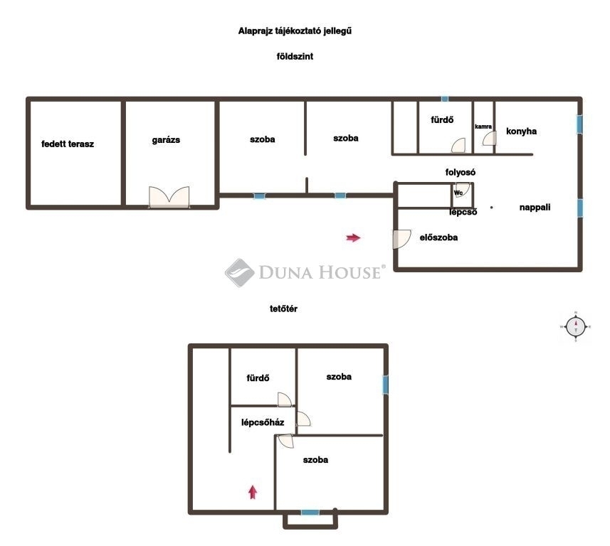 Felső szinten 2 szoba, fürdő wc-vel található.