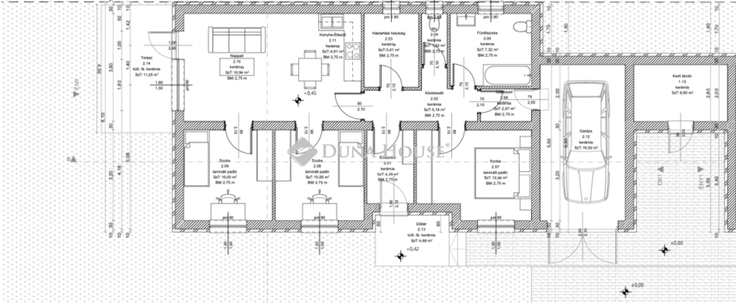 A 2. lakás hasznos lakóterülete 81,28 m2+egy önálló garázs és teraszok.