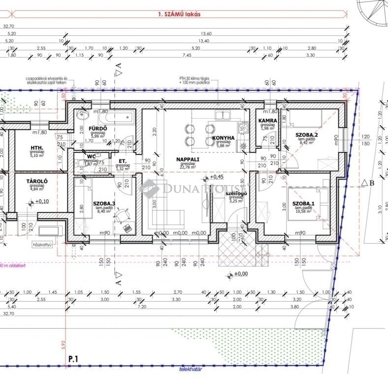 - 3 önálló bejáratú szoba (10.88 nm, 8.42 nm, 8.40 nm)