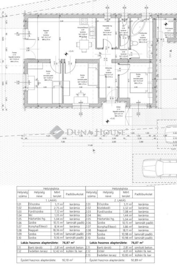 - kerti tároló, itt ér össze a két épület (2.81 nm)