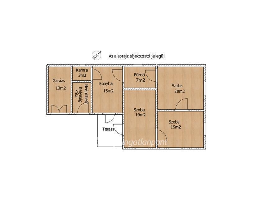 A házban három világos, nagyméretű szoba, konyha, kamra és fürdőszoba található, de további bővítésre is van lehetőség.