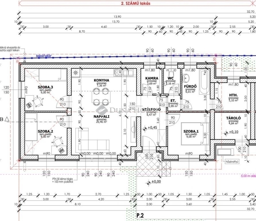 - 3 önálló bejáratú szoba (9 nm, 9nm, 9 nm)