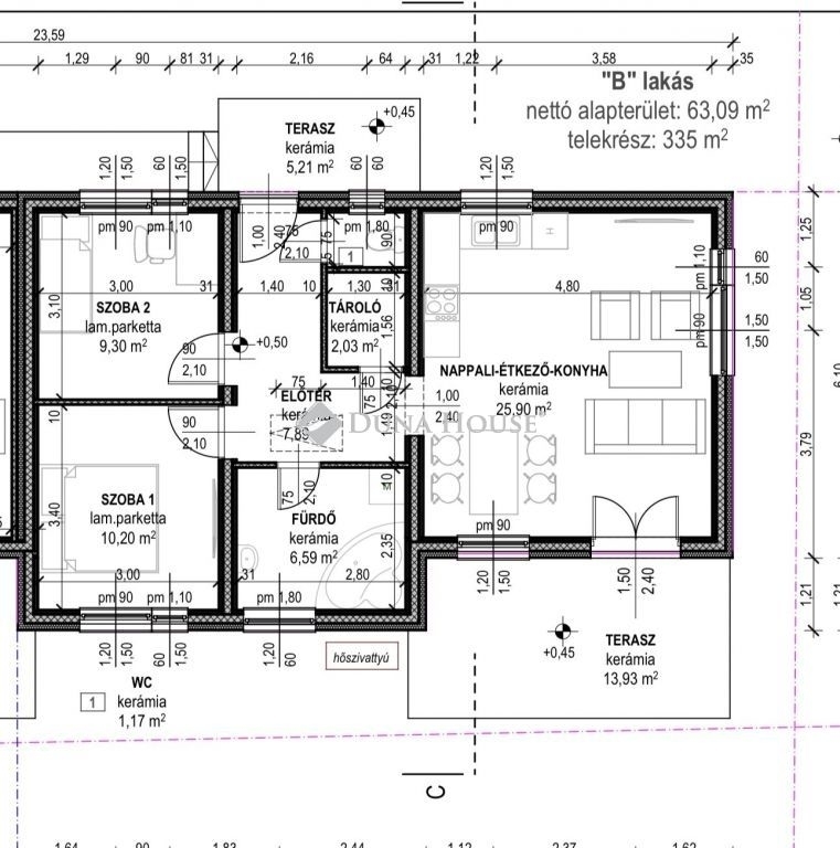 ELADÓ ÚJ ÉPÍTÉSŰ 3 szobás ikerházfél Monorierdőn!ALACSONY REZSIKÖLTSÉGŰ, KIVÁLÓ VÁLASZTÁS!Az ingatlan 63 m2-es kiváló elrendezésű igényes tervek alapján épülő ingatlan.Beton alapon könnyűszerkezetes ingatlanok cseréptető borítással.Barna lábazat barna cserép bézs színű homlokzat EXTRA TRAVERTIN MÉSZKŐ DÍSZÍTÉSSEL a nappali kijáratnál a teraszon.További extra barna nyílászárók az ingatlan vételárát képezik. H-tarifa óra, 1 db 3,5 kw inverteres klíma az ingatlanban.Telek területe 335 m2, az ingatlan szabadon álló építkezés így a bejárat jobb és bal oldalt külön leválasztva. Kényelmes praktikus legjobb választás.Kialakítása: 2 szoba, fürdő, külön wc, előtér, tároló, nappali+étkező konyha, 18 m2 nyitott terasz.Fűtése All in One hőszivattyú adja, padlófűtés mindenhol.10 cm ásványgyapot szigetelés (Az ásványgyapot különösen a kőzetgyapot) homlokzati szigetelés prémium, tartós (40-50+ év), nem éghető (A1 tűzvédelmi osztály) és kiváló páraáteresztő megoldás, amely megakadályozza a penészesedést,VÁLASZTHATÓ:Hidegburkolat 6000Ft/m2 melegburkolat 4000 Ft/ m2 áron választható,beltéri ajtók 95 000 Ft értékbenszaniterek:1 db 140x140-es fehér normál akril fürdőkád, Bruttó 90.000 Ft/db áron. Hozzá tartozik 1 db meleg vizes kiállás, 1 db kádtöltő csapteleppel Bruttó 25.000 Ft/db áron. Kivitelezésre kerül az épületben 1 db fehér normál Alföldi 65 cm-es mosdó, 45.000 Ft/db áron. Hozzá, tartozik 1 db mosdó csaptelep Bruttó 25.000 Ft/db áron. WC Cersanit President 1 db mély alsó kifolyásos és a hozzá tartozó Fehér Lagúna WC tartály és a WC üllőké Clivia fém csuklópánttal 85.000 Ft/ db áron. A szaniterekhez tartozó szifonok sarok szelepek Stb. A kialkudót ár tartalmaz továbbá 1 db mosógép kiállást is, amit a megrendelővel utólagos egyeztetés után építünk be.A könnyűszerkezetes építési mód ideális választás azoknak, akik gyorsan szeretnének modern, energiatakarékos otthonba költözni.Közelben: Iskola, Óvoda, Vasútállomás, Gyógyszertár, CoopAmennyiben felkeltettem érdeklődését, hívjon bizalommal.