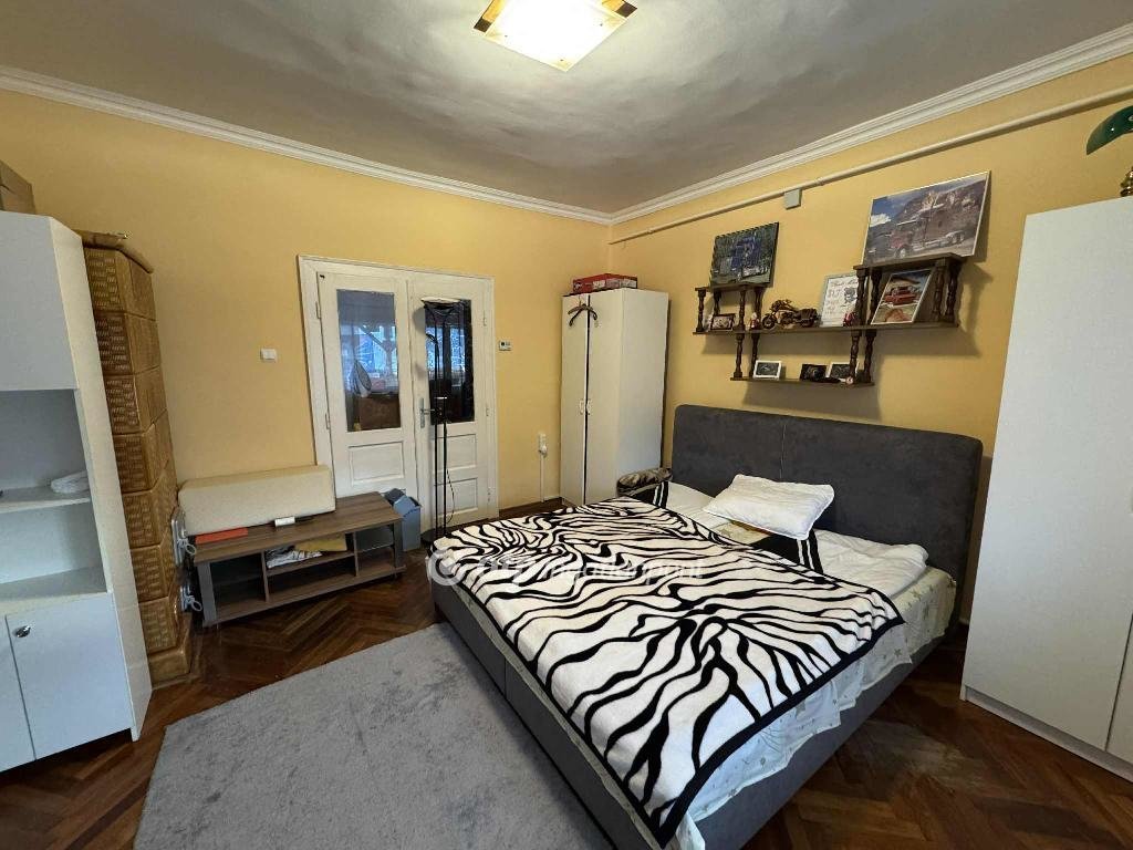 Helyiségei: 2 külön-nyíló szoba, konyha, étkező, kamra, fürdőszoba és közlekedő.