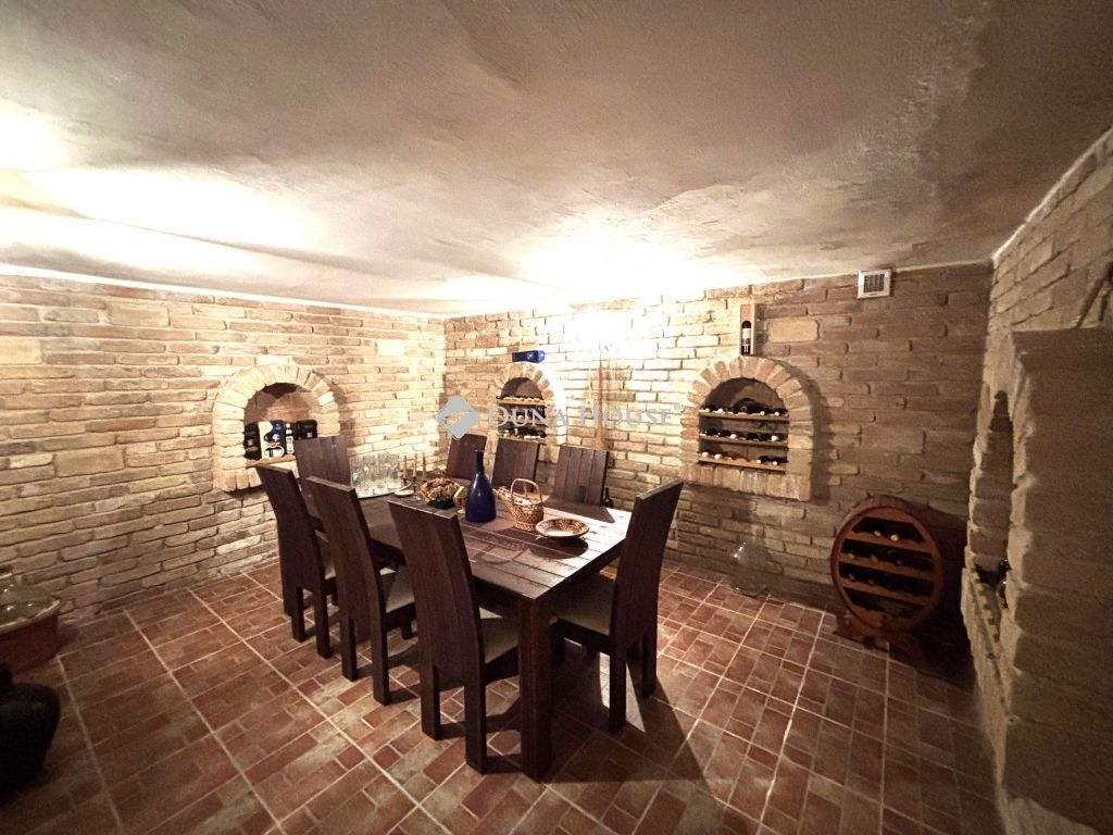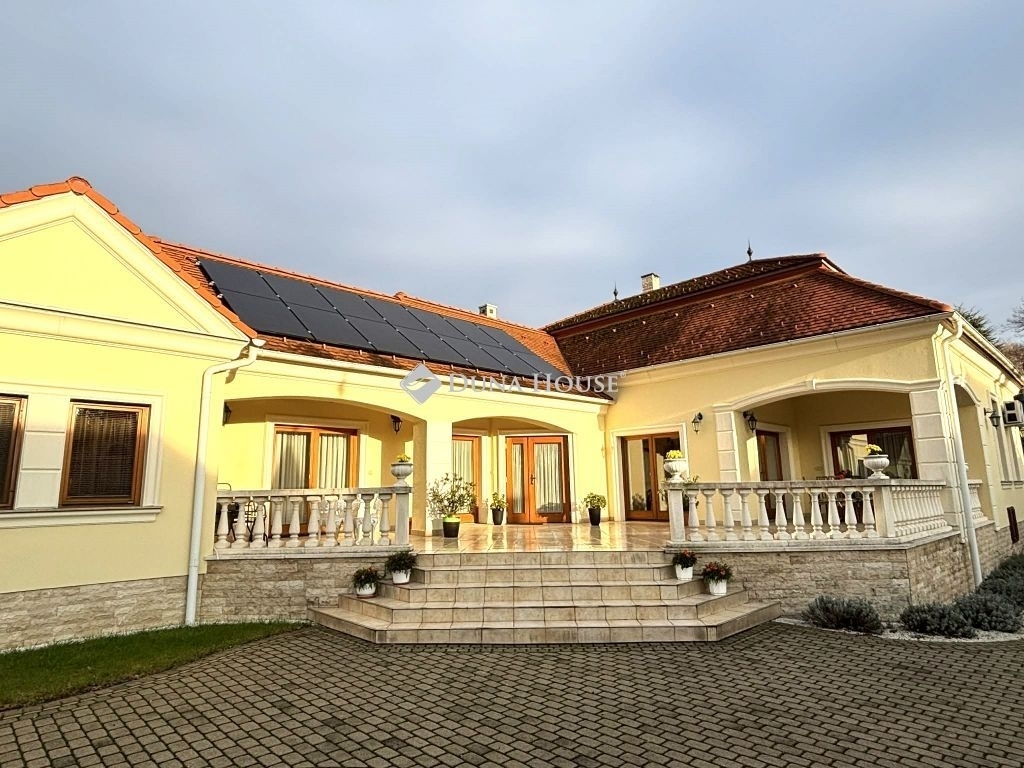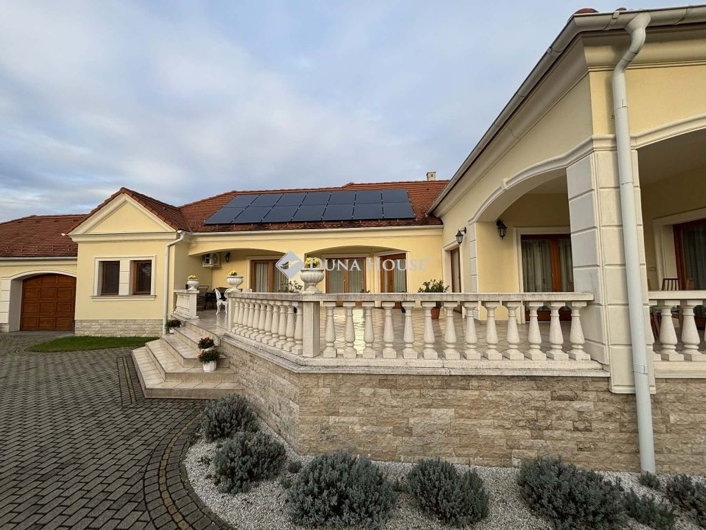 Legfontosabb jellemzők:Telek: 2.195 m²Lakótér: 253,57 m²Pince: 47,42 m²Terasz: 71,42 m²Összes alapterület: 323,41 m² Helyiségek: - Hálószobák: 3 (mindegyik saját fürdővel és gardróbbal)- Nappali + étkező + konyha- háztartási helyiség- kamra- közlekedő- előtér- nyári konyha +1 fürdőszobaExtra: Kétállásos garázs és tároló + további parkolóhelyek a térkövezett udvaronA tágas nappali, az étkező és a konyha szinte egy egységet alkotnak, mégis mindegyik külön karakterrel rendelkezik. A nagy méretű üvegfelületeknek köszönhetően a fény egész nap jelen van, ami barátságossá, otthonossá teszi az enteriőrt.Praktikum eleganciával párosítva: A ház elrendezése kényelmes és élhető: a privát terek jól elkülönülnek, mégis szerves részét képezik az otthon egészének. Az előkészített külön bejáratú apartman tökéletes lehet vendégeknek, idősebb családtagnak vagy akár irodának.A tégla burkolatú, hangulatos borospince igazi ékköve az ingatlannak baráti esték, borozások és meghitt beszélgetések tökéletes helyszíne.A parkosított, gondozott kertben gyümölcsfák, szőlő és konyhakert várja új tulajdonosát. Az automata öntözőrendszer és a fúrt kút biztosítják, hogy a kert mindig rendezett és üde legyen, minimális gondozással.Műszaki tartalom: - Vörösfenyő nyílászárók- 7,5 kW napelem- Padló- és radiátoros fűtés gázkazánnal- Gyönyörű vízteres kandalló- 3 db klíma- RiasztórendszerEgy otthon, ami kész arra, hogy valaki beleszeressen! Ez nem egy átlagos családi ház ez egy megteremtett élettér, ahol minden részlet harmóniában működik. A ház akár rövid időn belül költözhető, így a várakozás helyett hamar élvezhetővé válik a nyugalom, a minőség és az otthonosság.Amennyiben felkeltette érdeklődését ez a ritkaság, hívjon bizalommal a hét bármely napján!