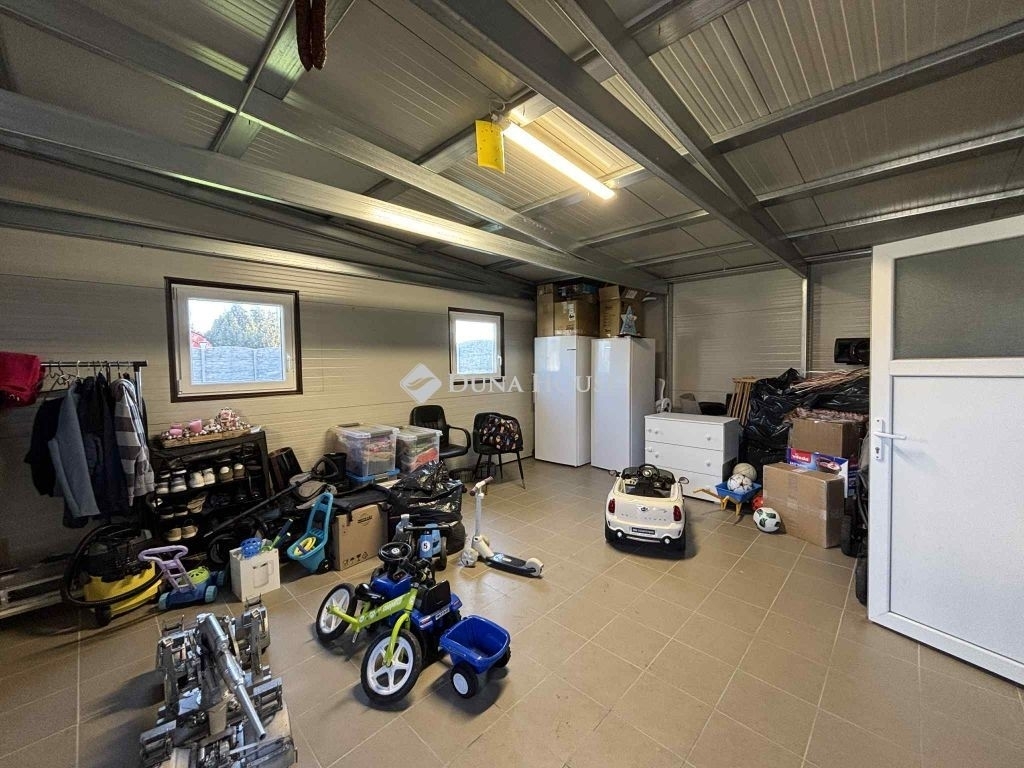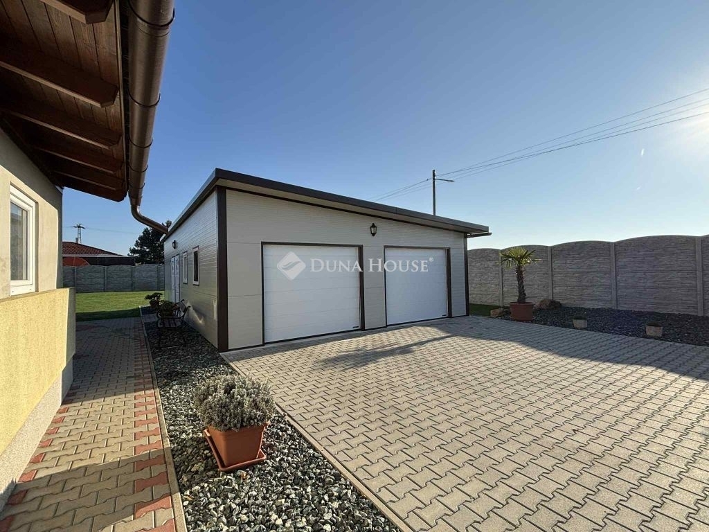 A kert igazi ékszerdoboz: füvesített, öntözőrendszerrel ellátott, robotfűnyíróval karbantartott, dupla garázzsal és tárolókkal felszerelt. Az elektromos kapuk pedig a kényelmet szolgálják.