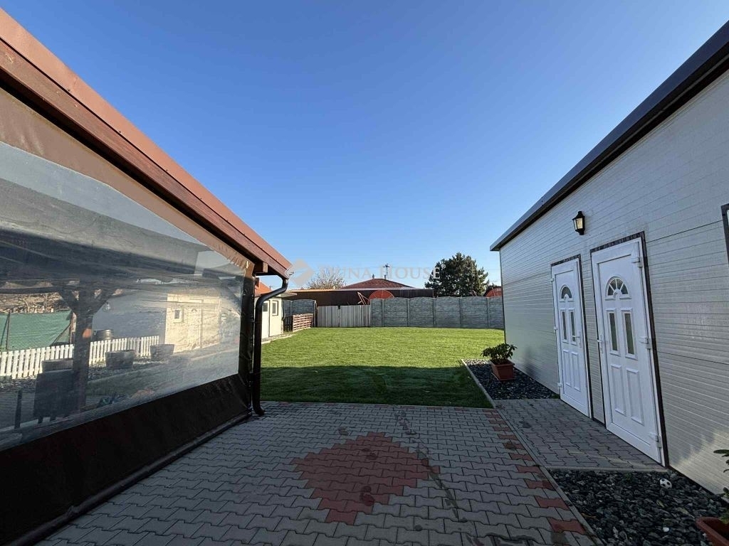A hátsó bejáraton keresztül megközelíthető egy 35 nm-es, hangulatos fedett terasz,, ami tökéletes helyszín családi pihenéshez vagy baráti összejövetelekhez.