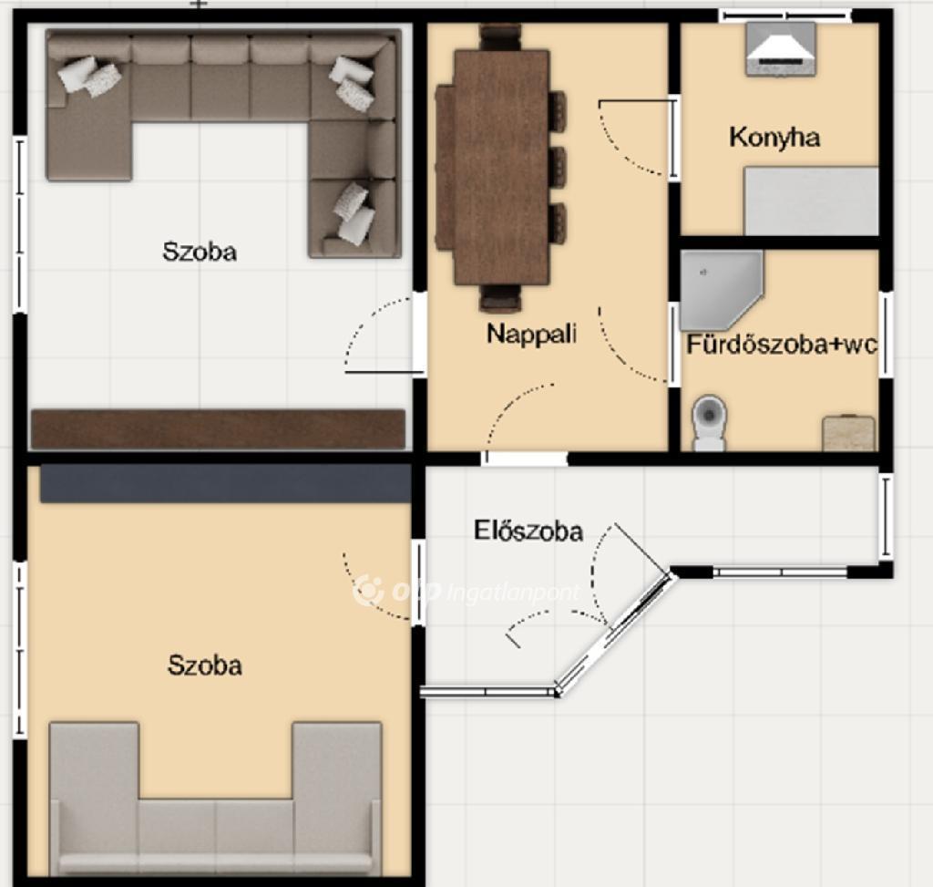 -a kiváló elosztású családi ház belső helyiségében : előszoba , 2 szoba , nappali , konyha , fürdőszoba+wc található