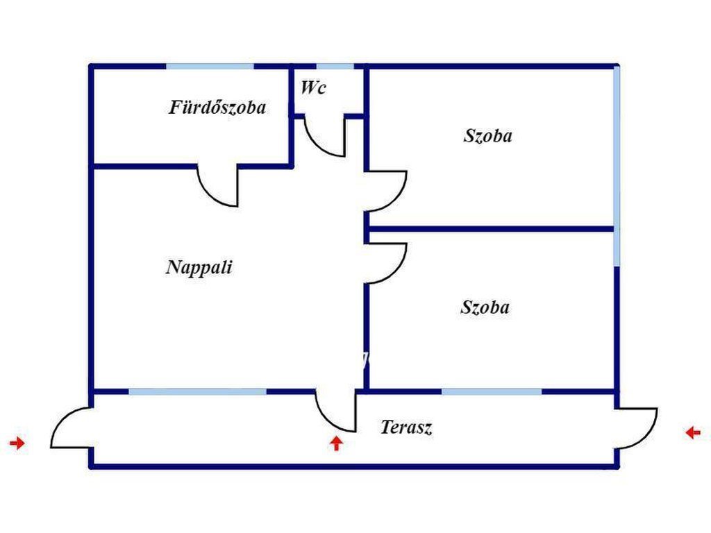 Elosztás: Praktikus belső tér – 2 külön szoba + tágas nappali, konyha-étkező, fürdőszoba és külön WC.