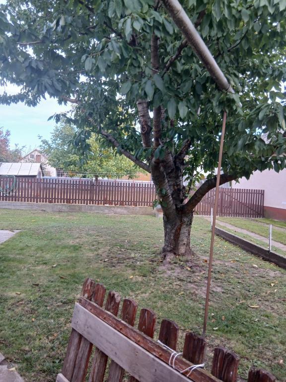 Az ingatlan rendezett, tágas udvarral rendelkezik, ahol cseresznyefa, diófa és őszibarackfa található.