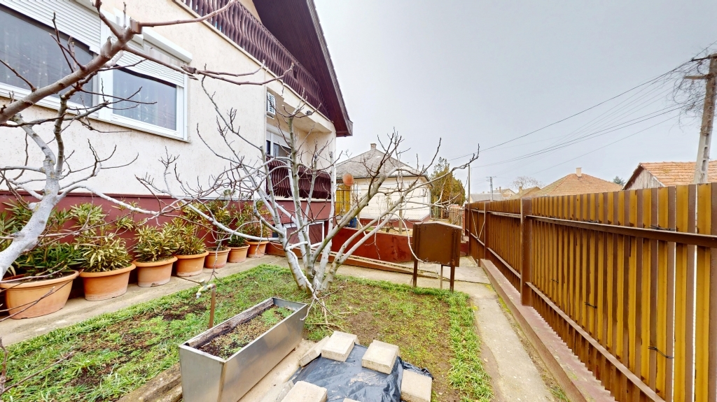 Az ingatlan előkertes, így közvetlenül az utca vonalhoz képest kedvezőbb távolságban helyezkedik el, mégsem utcafronti, nyugodt biztonságos környezetben, zárt körbekerített, gondosan karbantartott udvarral. Az ingatlan riasztórendszerrel is kiépített.