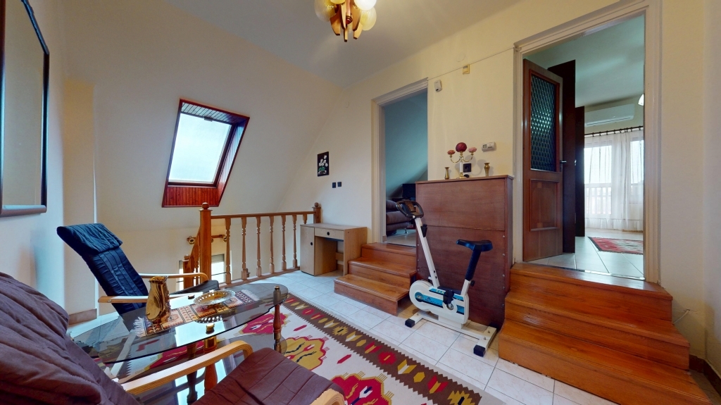 A családi ház 1989-ben épült szilikát és tégla falazattal, Észak-déli fekvésű, így egész nap világos és napfényes. Az ingatlan elrendezése praktikus és tágas: az emeleten 3 külön nyíló szoba, fürdőszoba, külön WC, gardrób, előtér, erkély, az alsó szinten egy 46 nm-es hatalmas nappali /mely két szobára is osztható/, konyha étkezővel, előtér, fürdőszoba, külön WC, kamra, erkély biztosítja a kényelmes családi életet.