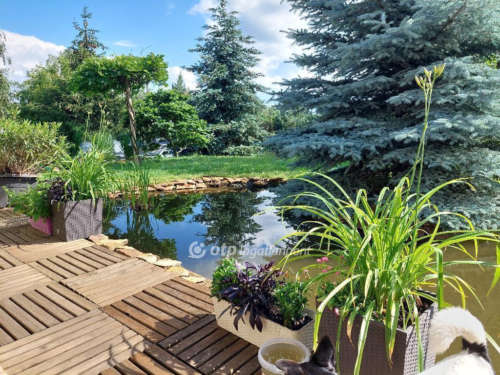 A telek 1067 nm nagyságú, gyönyörűen parkosított, különleges fákkal és örökzöldekkel van beültetve.