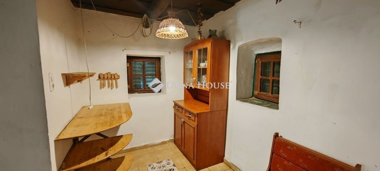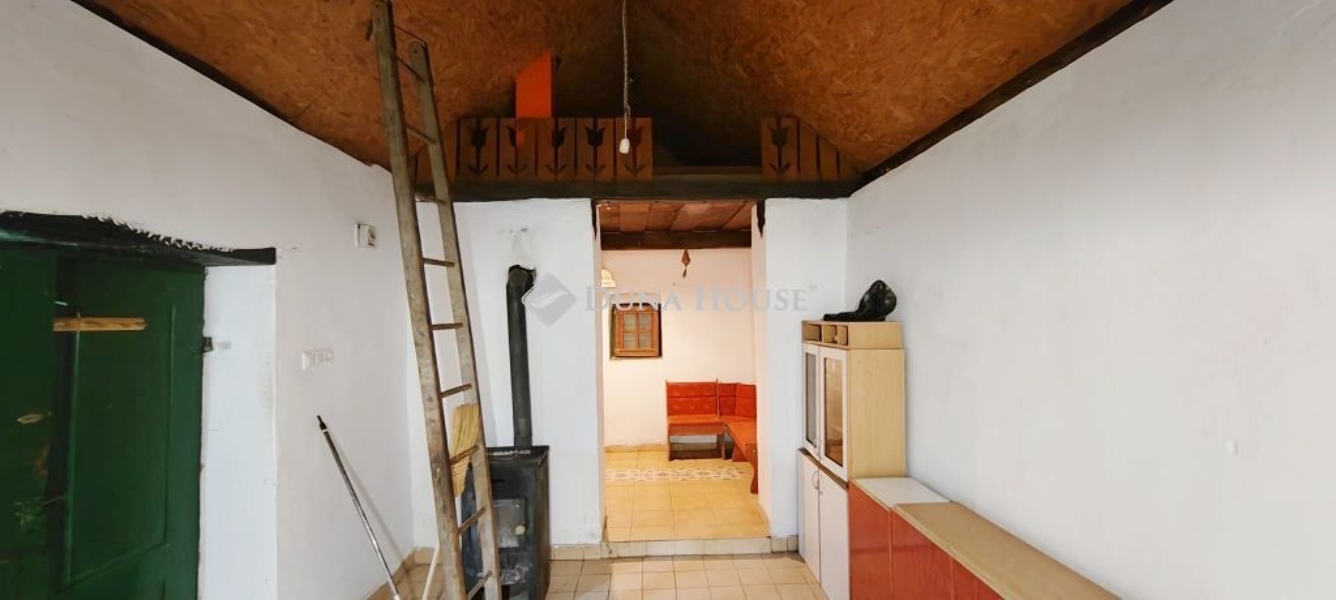 Gyönyörű zöld környezetben eladó 22 nm-es kis ház,melyben 1 szoba és 1 konyha található. A konyha és a szoba fölött egy részen galériázva van. A ház téglából épült, cserép borítással, Villany az ingatlanban. Fűtése kandallóval megoldott.