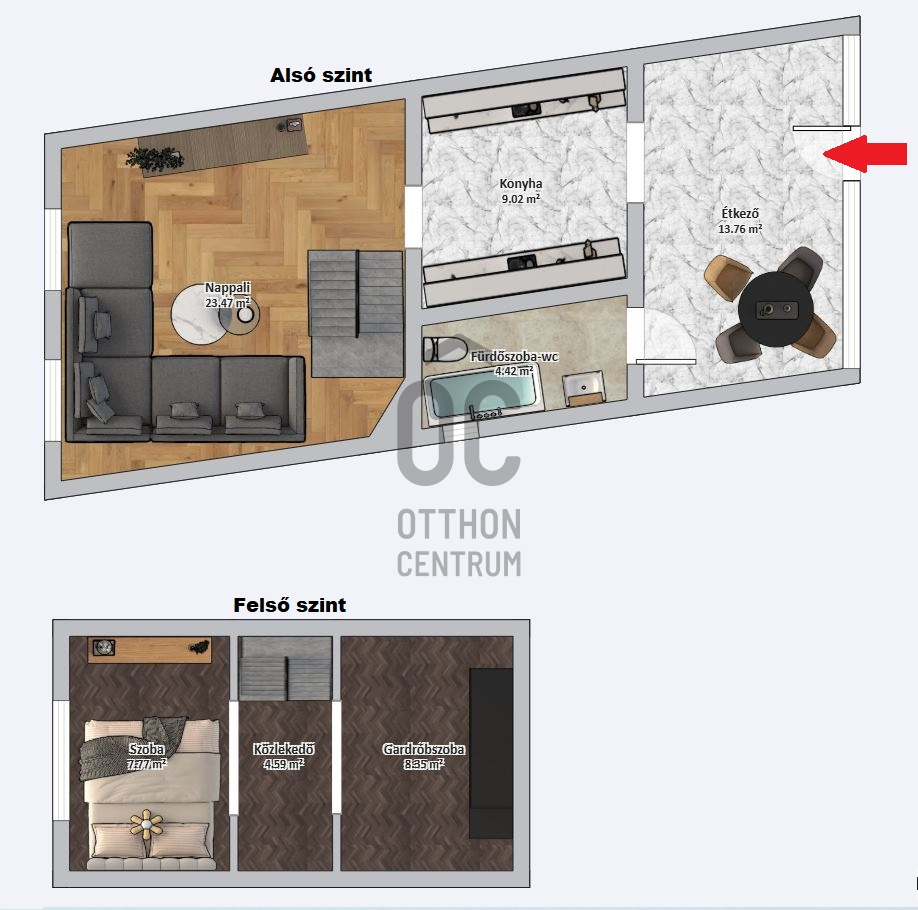 - Nettó 71,38 m2-es ház, tetőtér beépítéses.