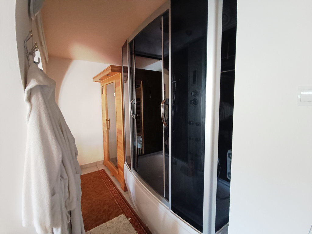 - szuterén szinten: szoba, wellness szaunával, zuhanyzó/WC, amely önálló vendég lakrészként is hasznosítható