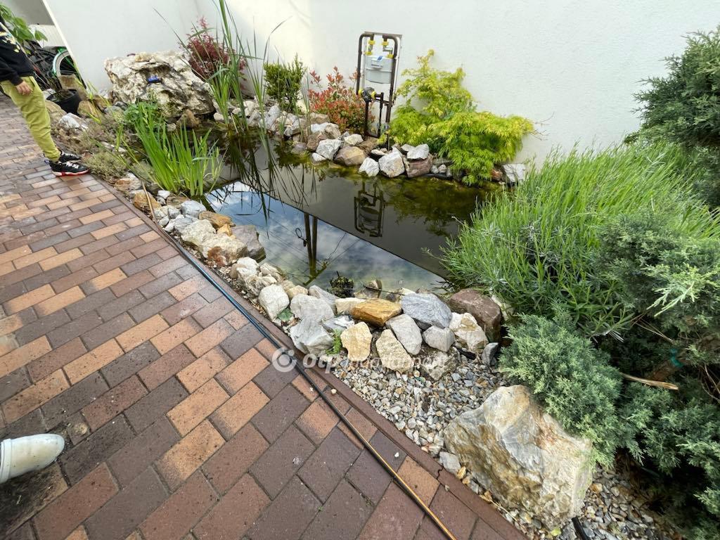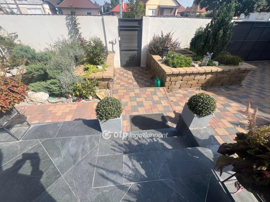 Az 522 nm-es telken fekvő otthon udvara gondozott, parkosított, öntözőrendszerrel kialakítva.