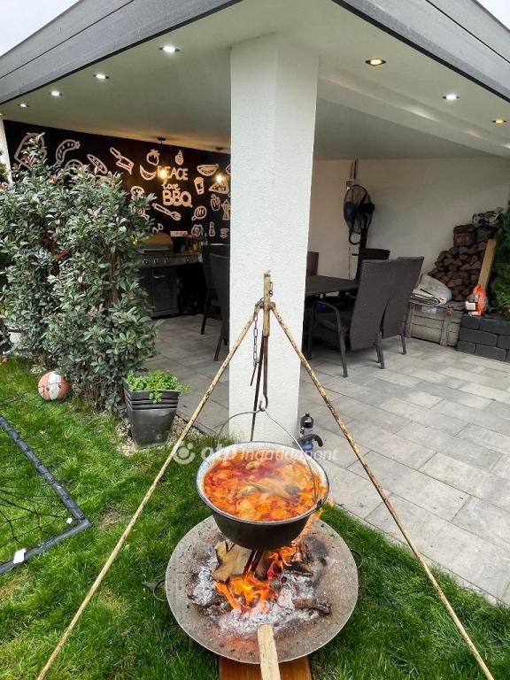 Az udvaron egy félig nyitott, téliesített grill terasz található, amely tökéletesen alkalmas családi és baráti összejövetelekre.