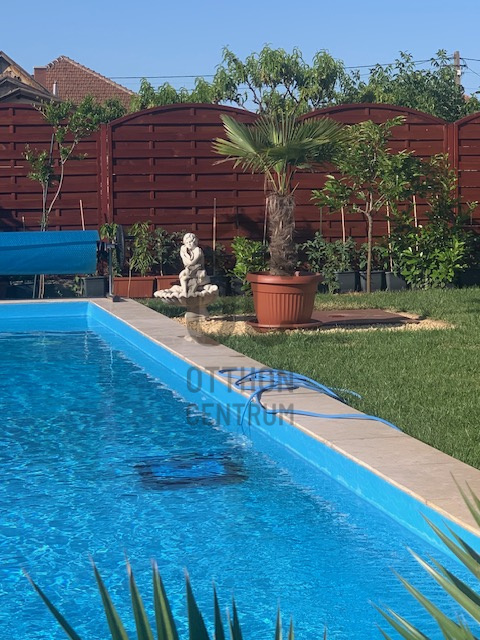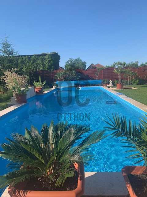 A kertben 12 méteres medence biztosítja a felfrissülést a forró nyári napokon – ideális családi szórakozásra, úszásra vagy baráti összejövetelekhez.