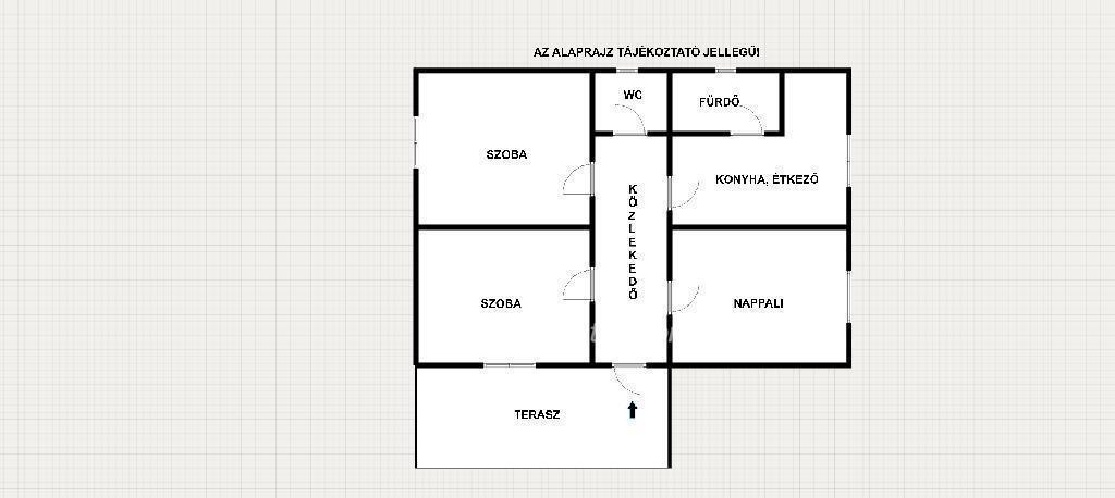 A földszinten egy terasz, nappali, konyha/étkező, két szoba, közlekedő, WC és egy fürdő került kialakításra.