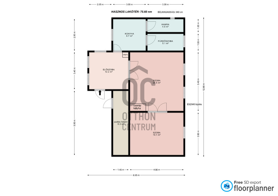 A 340 cm belmagasság galéria kialakítására ad lehetőséget.