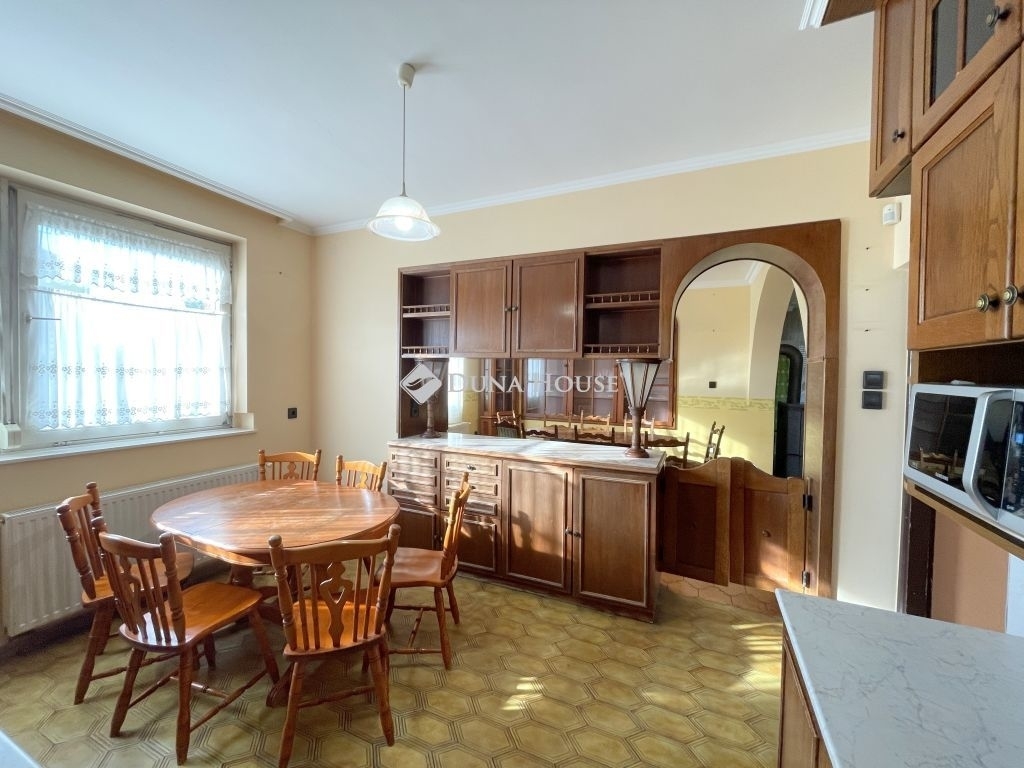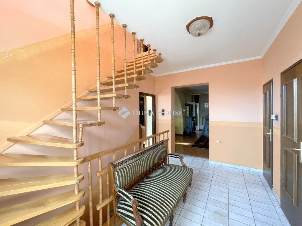 A főépület 1985-ben épült épült tégla falazatú, szigetelt. Az alsó szinten lévő az előtérből lehet az emeletre és a pincébe jutni. Ezen szinten helyet kapott egy tusoló, külön bejáratú wc és gardrób, tágas konyha beépített konyhabútorral és hozzá kapcsolódó kamrával valamint egy nagy méretű nappali - étkező rész és egy szoba ami a kertből is megközelíthető. Az emeleti részen további 3 szoba található saját gardróbrészekkel valamint fürdő és külön wc. A lakóház alatt található kb 30 nm-es pincében kapott helyet a gázkazán amely a ház fűtéséről gondoskodik, valamint tárolásra alkalmas helyiségek kerültek kialakításra.