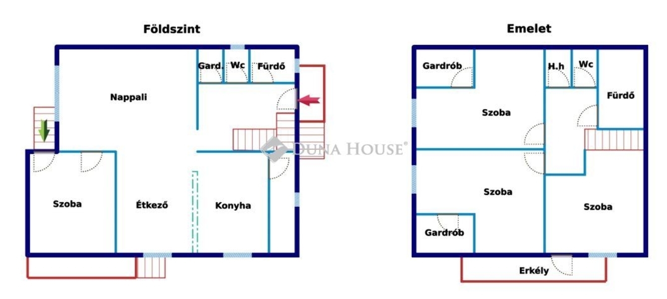 - földszint kb. 94 nm + emelet 78 nm ( + erkély ) + pince kb. 30 nm