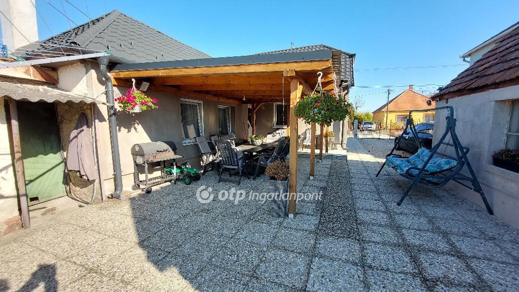 Az OTP Ingatlanpont eladásra kínálja Győr-Moson-Sopron megyei Nagyszentjánoson 96nm-es felújított családi házat. A település rendkívül jó elhelyezkedésű, közel az M1 autópálya, településen áthaladó vasút lehetővé teszi, hogy Győr belvárosába érjünk 10-12 perc alatt. A ház felújítása során új tetőt kapott, a falakat beszigetelték, a nyílászárókat műanyagra cserélték, megtörtént az összes víz és villanyvezeték felújítása is. A szobák lamináltpadló, a többi helyiség járólap borítású. Az otthon melegéről, hűtő-fűtő klíma gondoskodik, kiegészítve vegyes tüzelésű kazánnal, radiátoros hőleadókkal. Az udvar és a kert gyönyörűen gondozott, nagyméretű fedett terasz szolgálja a lakók kényelmét. A nagyméretű garázs és további melléképületek tárolásra is alkalmasak.