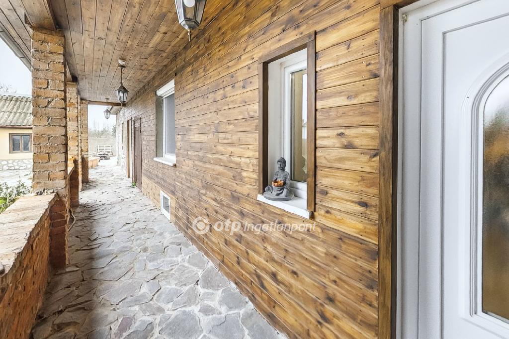 Az udvaron dupla garázs és egy külön tárolóépület is található, így minden járműnek és szerszámnak meglesz a maga helye. Az L-alakú, fedett tornác a ház egyik legkülönlegesebb pontja-itt igazán jólesik egy reggeli kávé vagy egy pohár bor a naplementében.