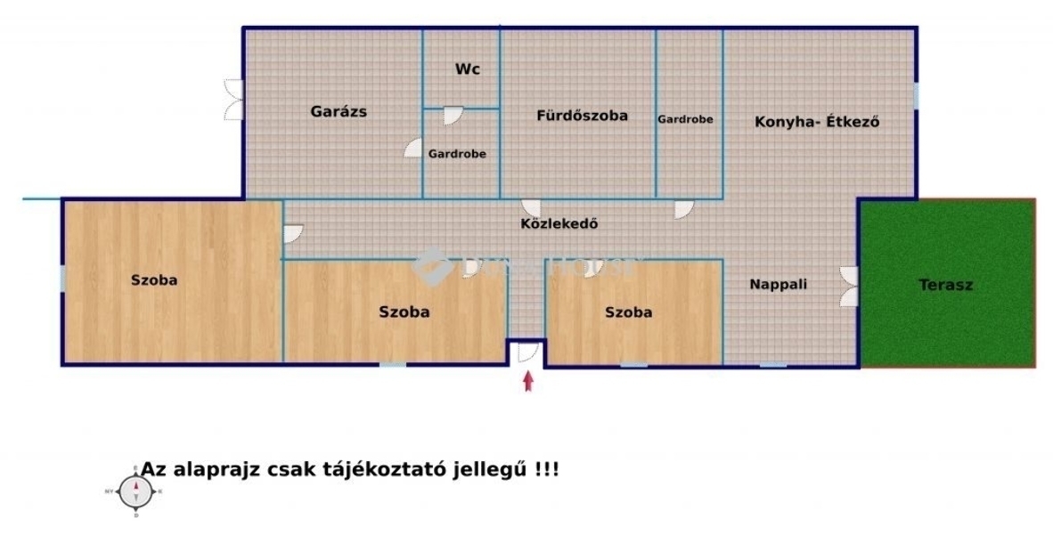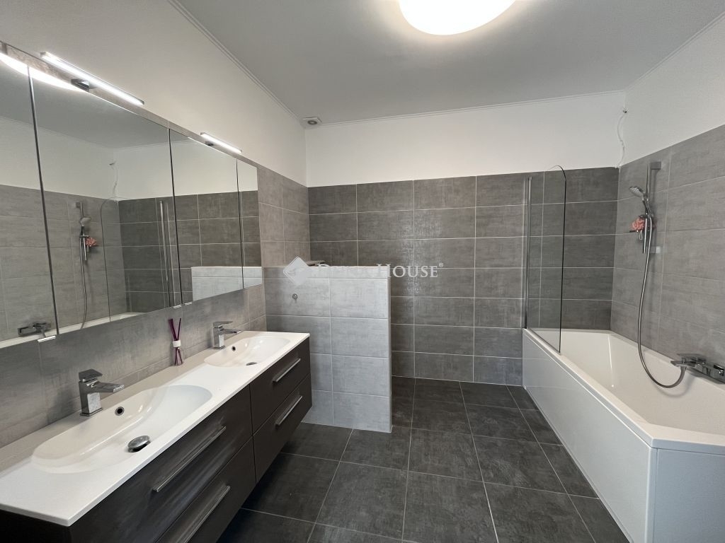 A ház felszereltsége kiemelkedő: hőszivattyús padlófűtés, 15 cm-es hőszigetelés, elektromos redőnyök és elektromos garázskapu.