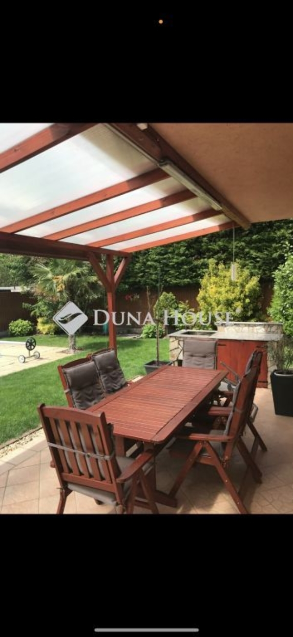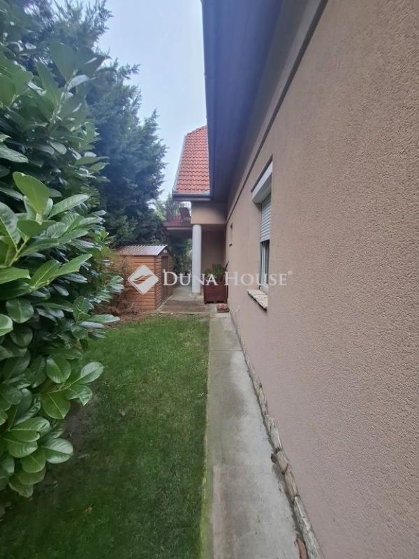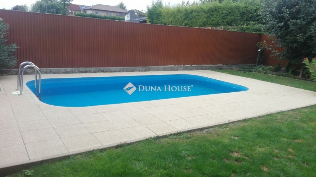 Az ingatlanhoz tartozik egy rendezett, parkosított kert is, ahol öntözőrendszer és fúrtkút is található. A kertkapcsolatos, fedett teraszra napellenző is felhelyezésre került. A ház további értéknövelő tulajdonsággal is bír, teljes gépészeti berendezéssel kialakított korszerű vízforgató- és szűrőrendszerrel ellátott medencét építettek, amely hosszú távon gazdaságosan üzemeltethető. Továbbá riasztó és kamera rendszer is felhelyezésre került.