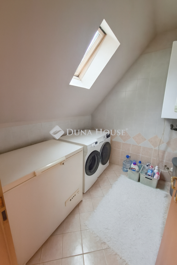 Az Élettéről: a földszinten hatalmas, világos amerikai konyhás nappali (51m2) - ahonnan fedett terasz nyílik a kert felé, előtér, kamra, fürdőszoba, lépcsőtároló, egy autóbeállására alkamas garázs található. Az emeleten: 4 szoba, közlekedő, fürdőszoba, háztartási helység került kialakításra. Az otthon melegéről gázkazán gondoskodik, mely nem régen lett karbantartva és a földszinten padlófűtés biztosítja a kényelmes komfortérzetet.