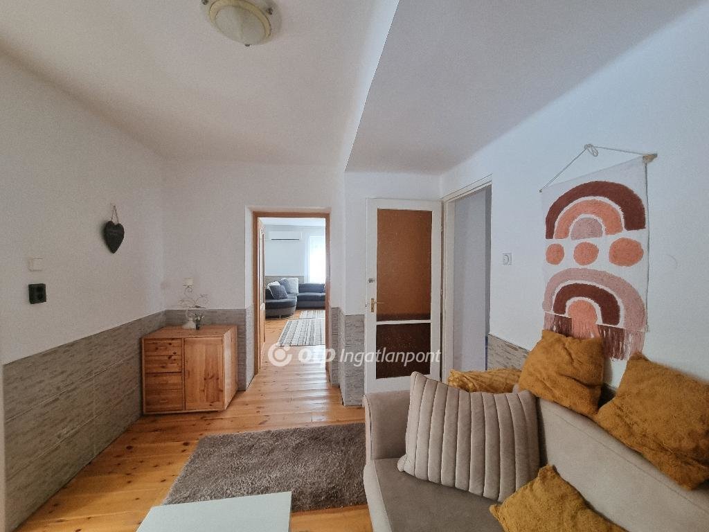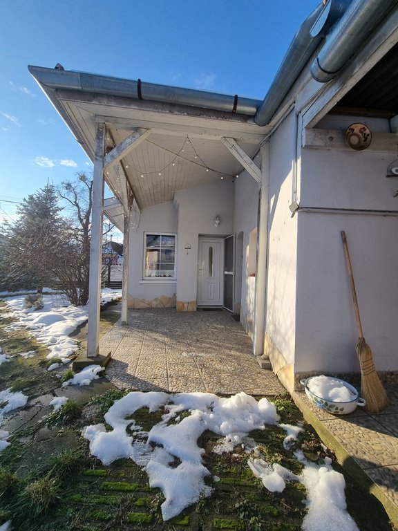 Veszprém vármegyében, Pápától 10 km-re a Bakony lábánál kínálok megvételre 477 m2-es telken található 75,5 m2-es nyaraló jellegű családi házat. A bakonyi hangulatú település jól megközelíthető tömegközlekedéssel, gépkocsival. A vidéki stílusú ház az 1960-as évek végén épült, Több felújításon esett át. Statikailag és szerkezetileg jó állapotú. Falazata tégla és kő, tetőszerkezete új, padlástere gondozott. Valamennyi nyílászáró anyaga műanyag, utca fronton redőnnyel. A ház elosztását tekintve áll: 2 egész szobából, 1 félszobából, előszobából, konyhából, fürdőszobából és WC helységből, kamrából, és 2 teraszból. A házhoz egy nyári konyha jellegű,a házhoz közvetlen csatlakozó épületrész is tartozik. Az udvaron szép parkosított előkert, kút, verem-borospince, piknikező, garázs, fedett terasz találhatók. Itt élvezheti a csendet és nyugalmat a vidéki környezetet. Téli hideg napokon a ház melegéről hűtő-fűtő klímák és kályha, kandalló tud gondoskodni. A családi ház igény szerint bútorozva is megvásárolható. Ez az ingatlan nyaralónak vagy kisebb otthonnak ideális. Ajánlom mindazon érdeklődők figyelmébe, akik falun, de mégis egy városhoz közel, vonzó természeti környezetben, barátságos, biztonságos és nyugodt, családias helyen keresnek otthont. A településen található erdőkkel, hegyekkel körülvett 34 hektáros víztározó-tó, amely nyaranta kellemes kikapcsolódást nyújt a pihenni vágyóknak, a környék pedig számos túrázási lehetőséget kijelölt túraútvonalakon. A tó 10 perc sétára található a háztól. Az OTP Ingatlanpont teljes körű ügyintézéssel áll az eladók és a vevők rendelkezésére. A kínálatunkból választott ingatlan finanszírozásához kedvezményes hitelkonstrukciót kínálunk. Az adásvételi szerződés megkötéséhez igény szerint megbízható ügyvédi közreműködést biztosítunk, és segítséget nyújtunk az adásvételhez kapcsolódó ügyek intézéséhez is. Amennyiben felkeltette érdeklődését az általam kínált ingatlan, keressen bizalommal.