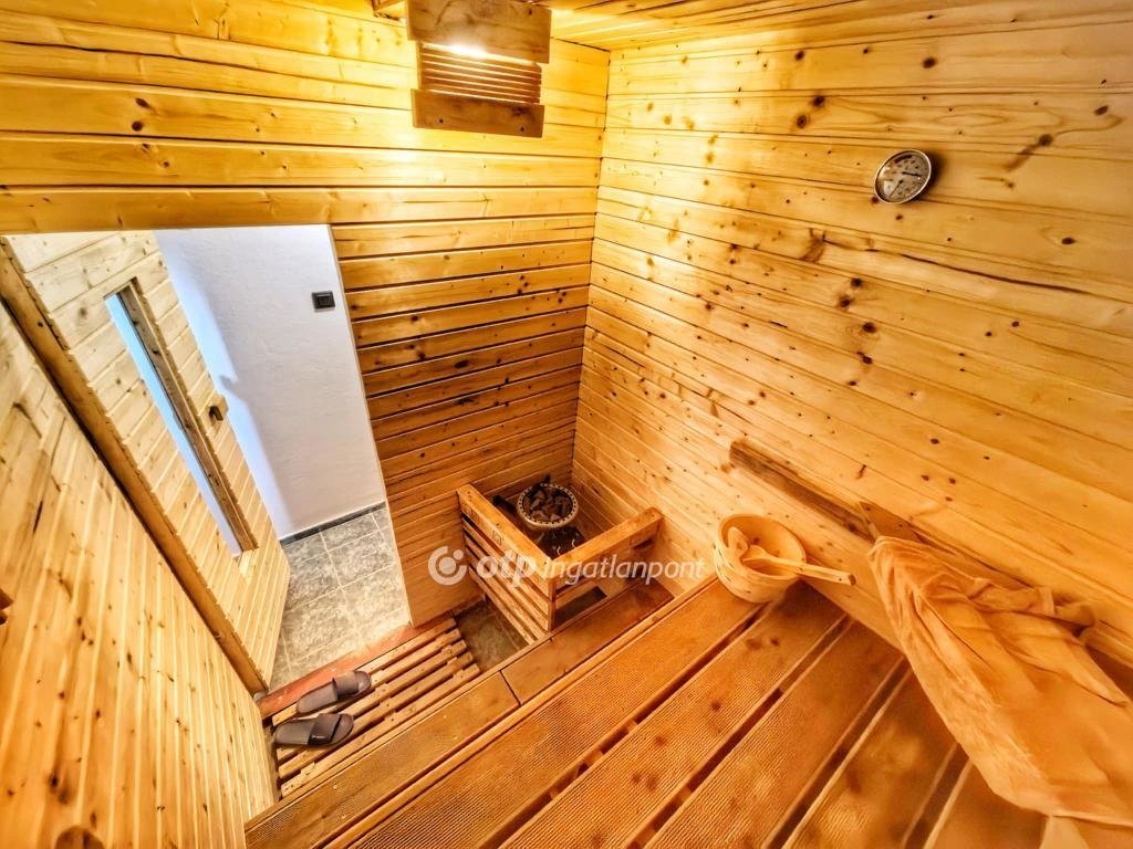Fedett terasz és fedett kiülő is tartozik az ingatlanhoz, valamint egy épített medence gépészettel. A pincében helyet kapott egy finn szauna is.